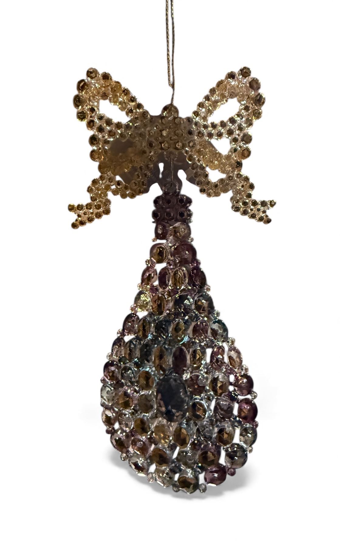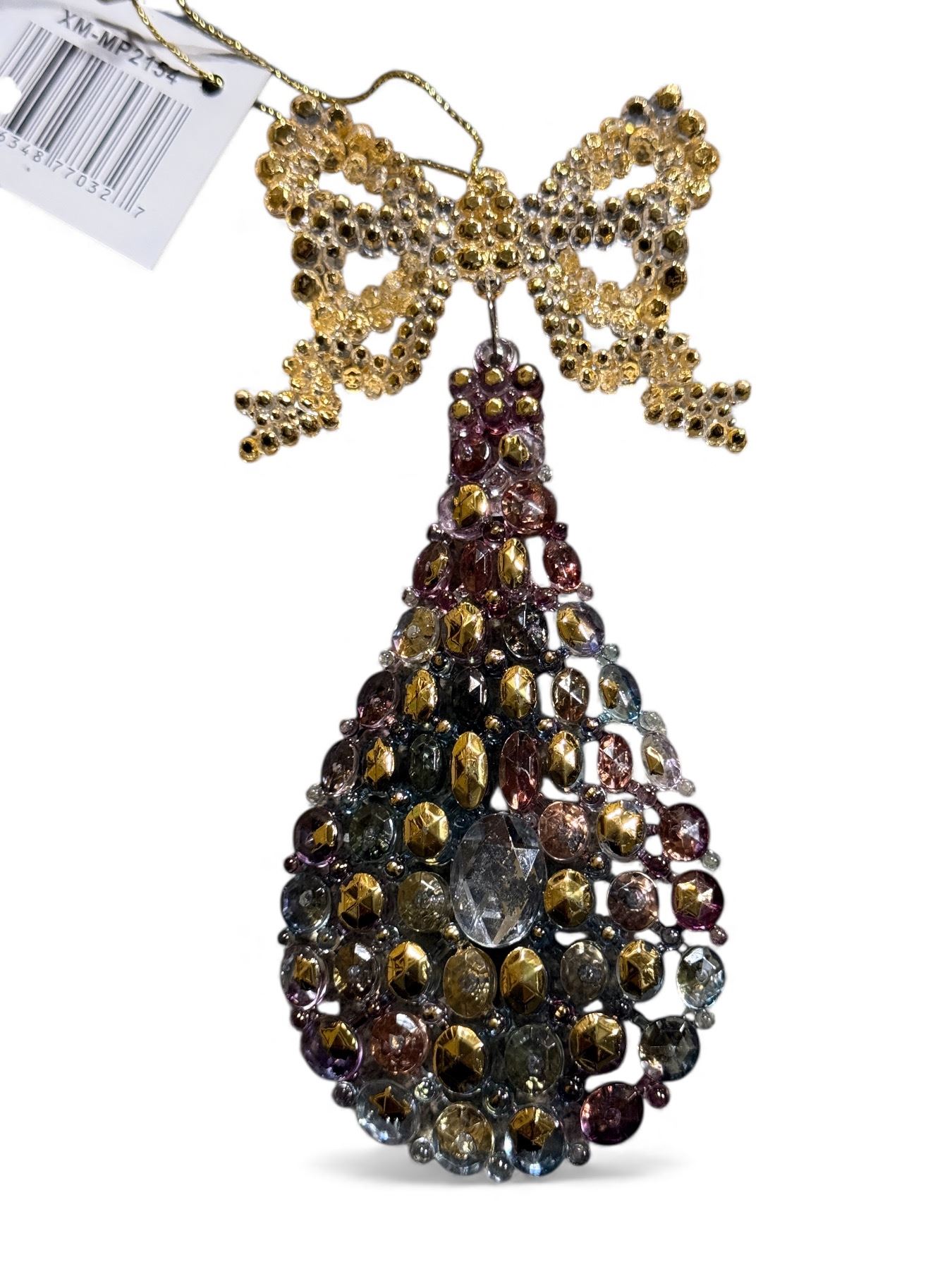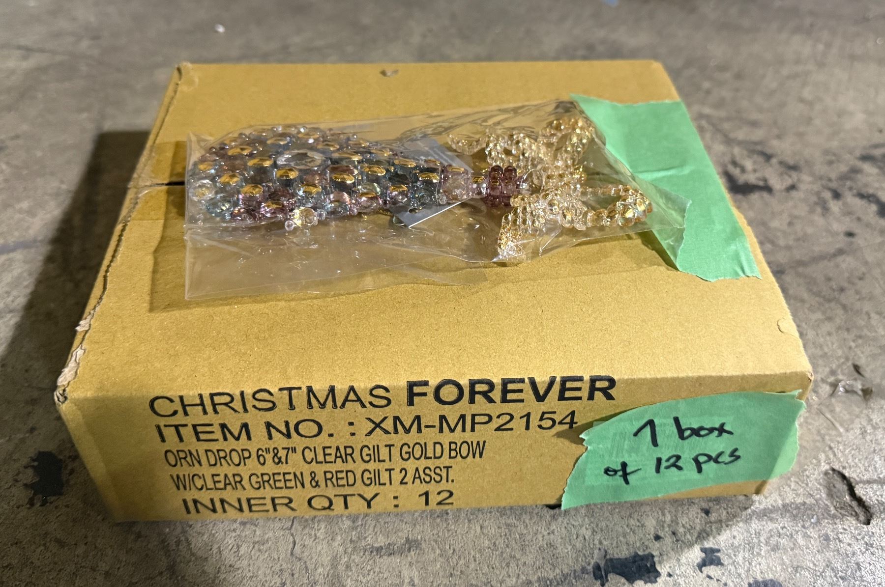 12 Pcs Orn Drop 6" Clear Gilt Gold Bow (Christmas Forever - XM-MP2154)