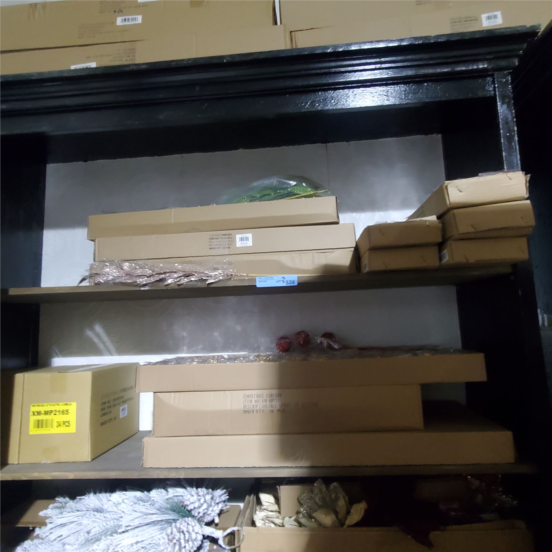 2 Shelves of Magnolia Leaves, Ball Ornaments, and Wooden Snowflake Decor (Christmas Forever - Various Models)
