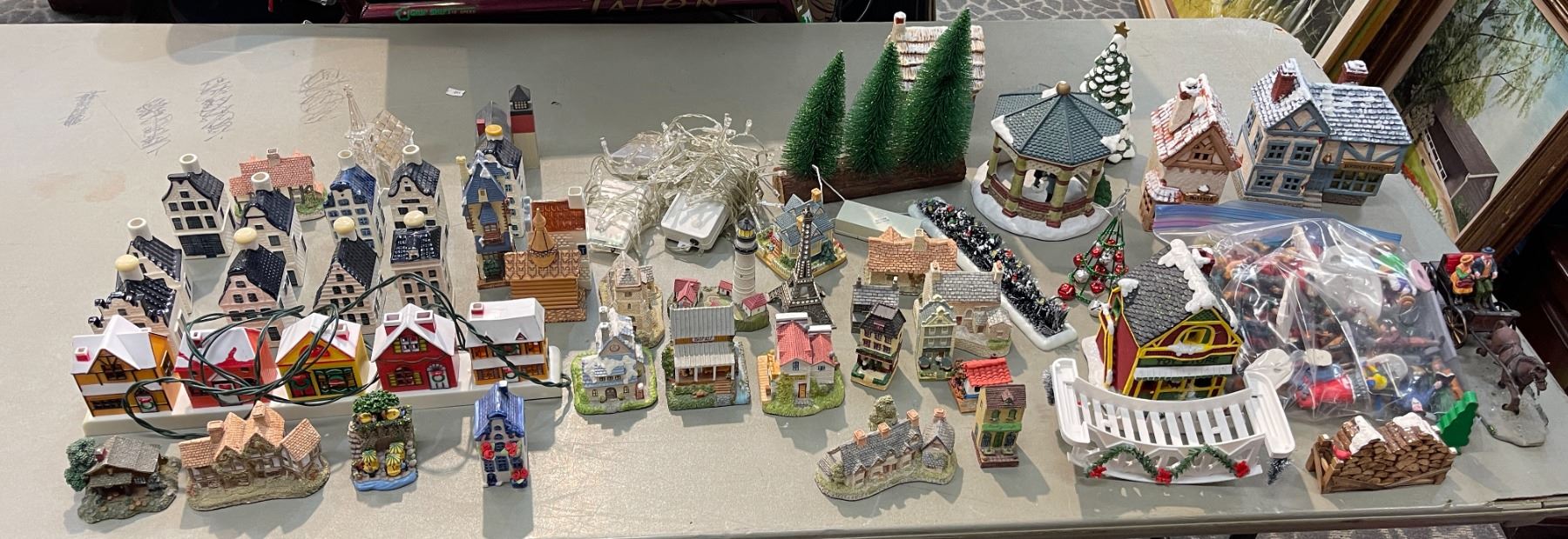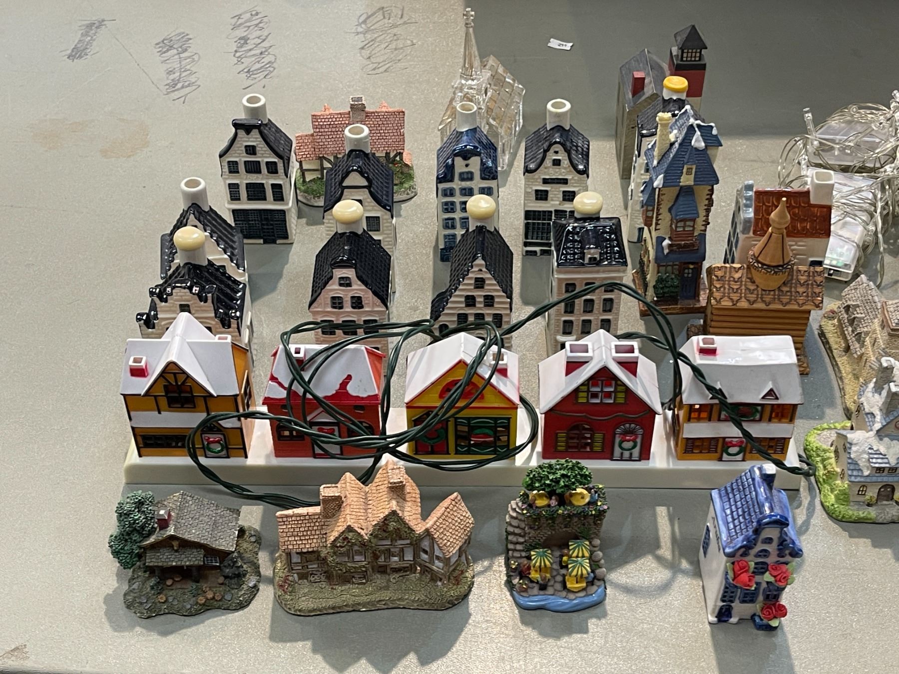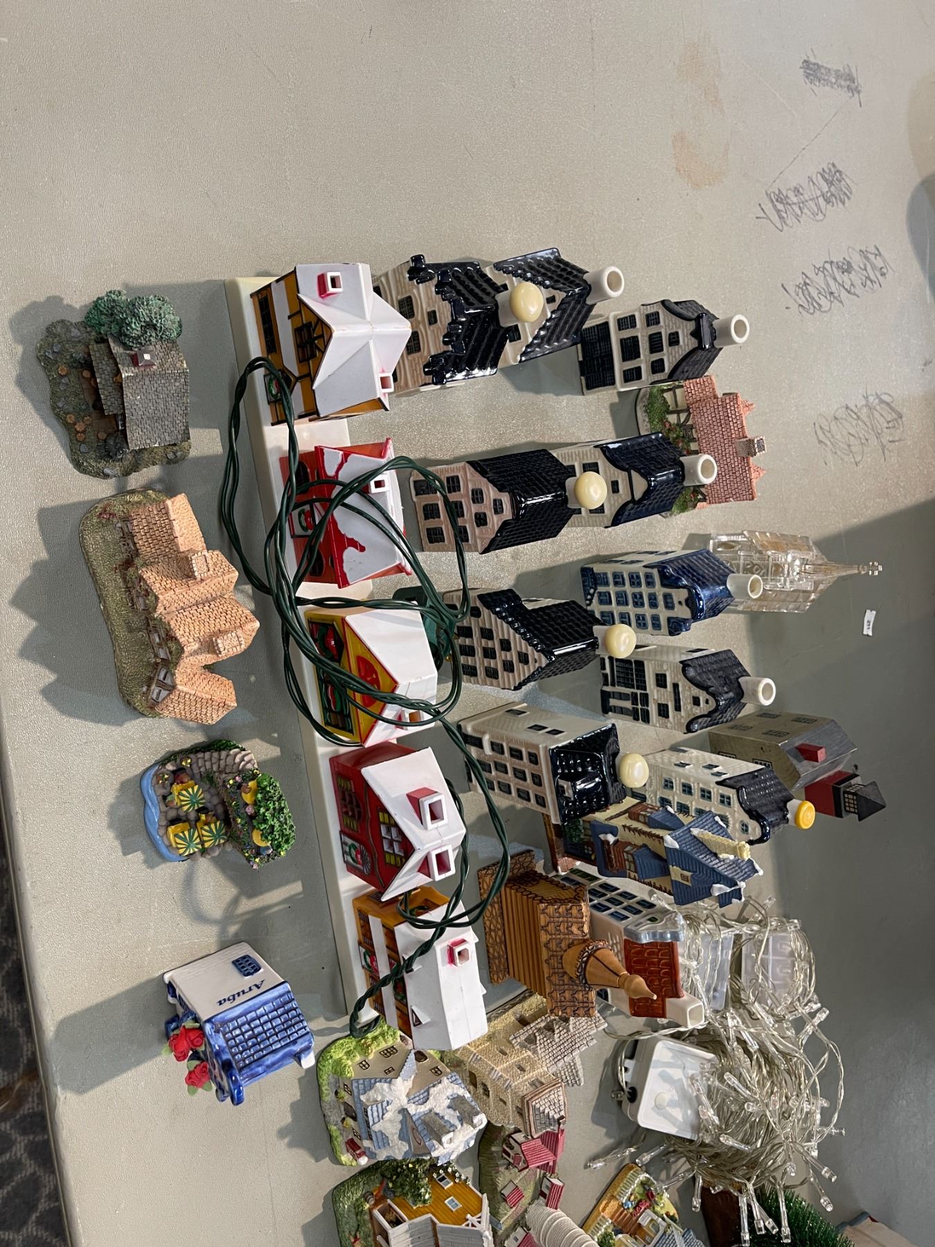 2 Totes Full Of Miniature Buildings, Light Ups, Miniature Model Train Accessories, Etc..