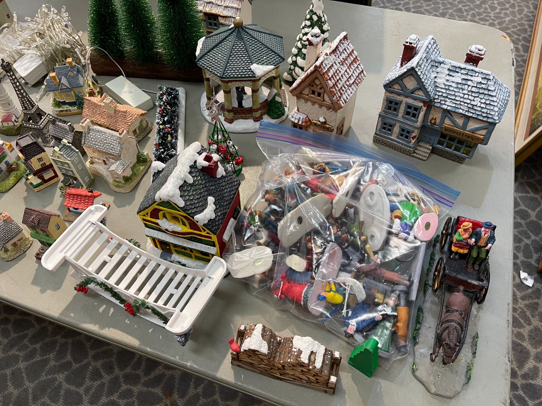 2 Totes Full Of Miniature Buildings, Light Ups , Miniature Model Train Accessories, Etc..