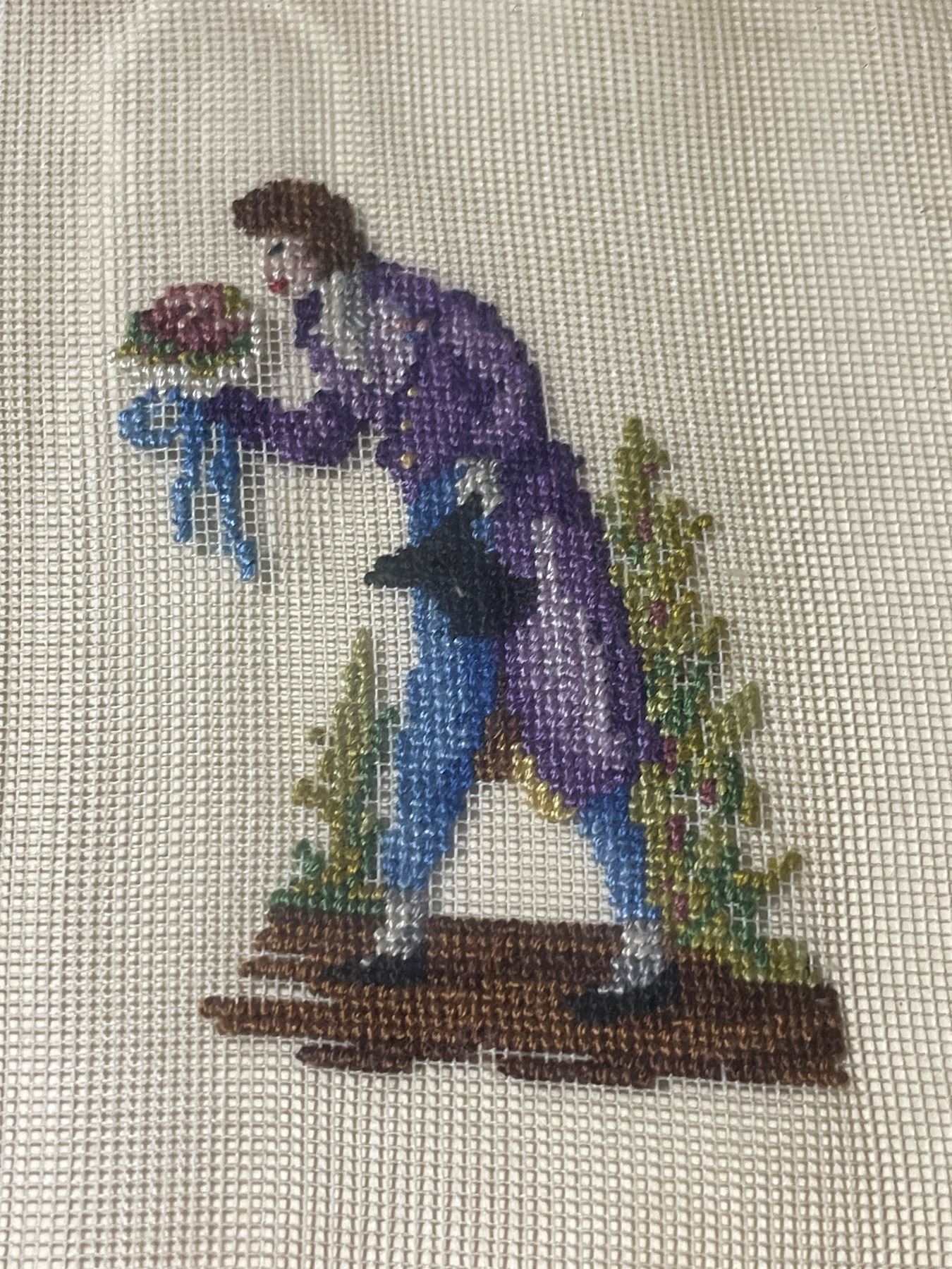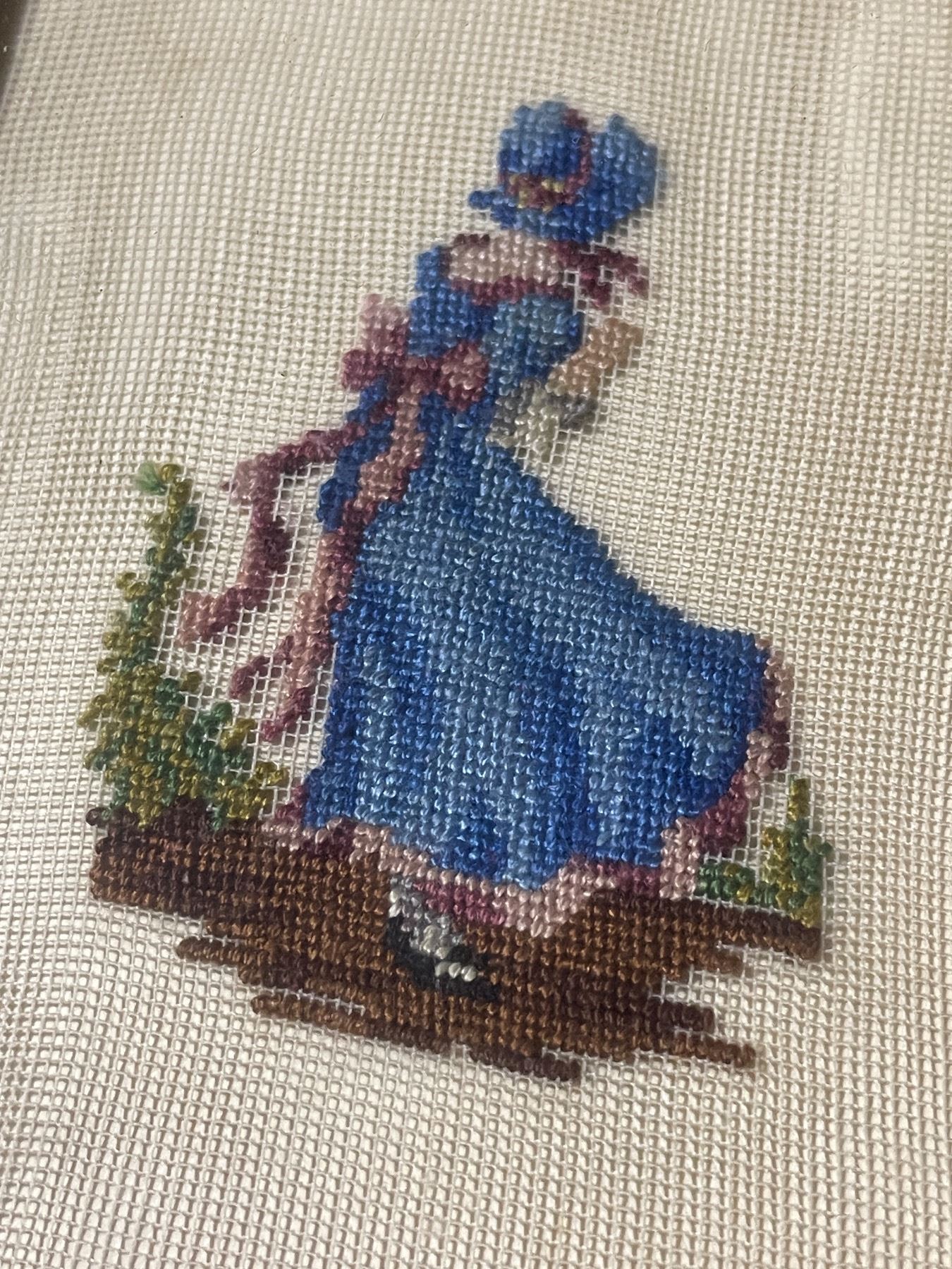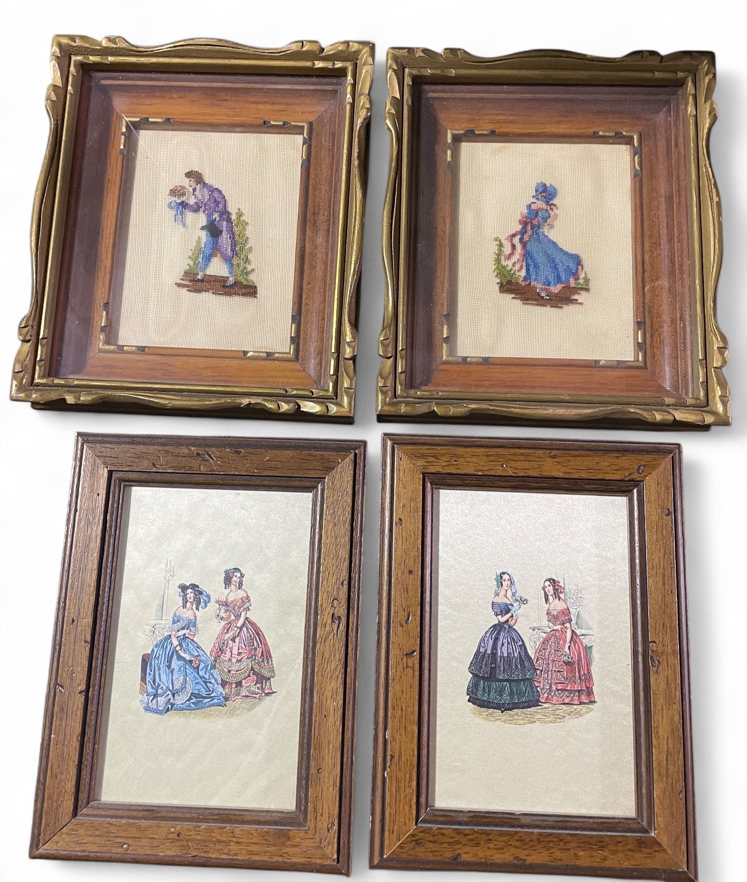 2 Vintage Petit Point Pictures and 2 Prints - Petit Points are 7" x 7" framed