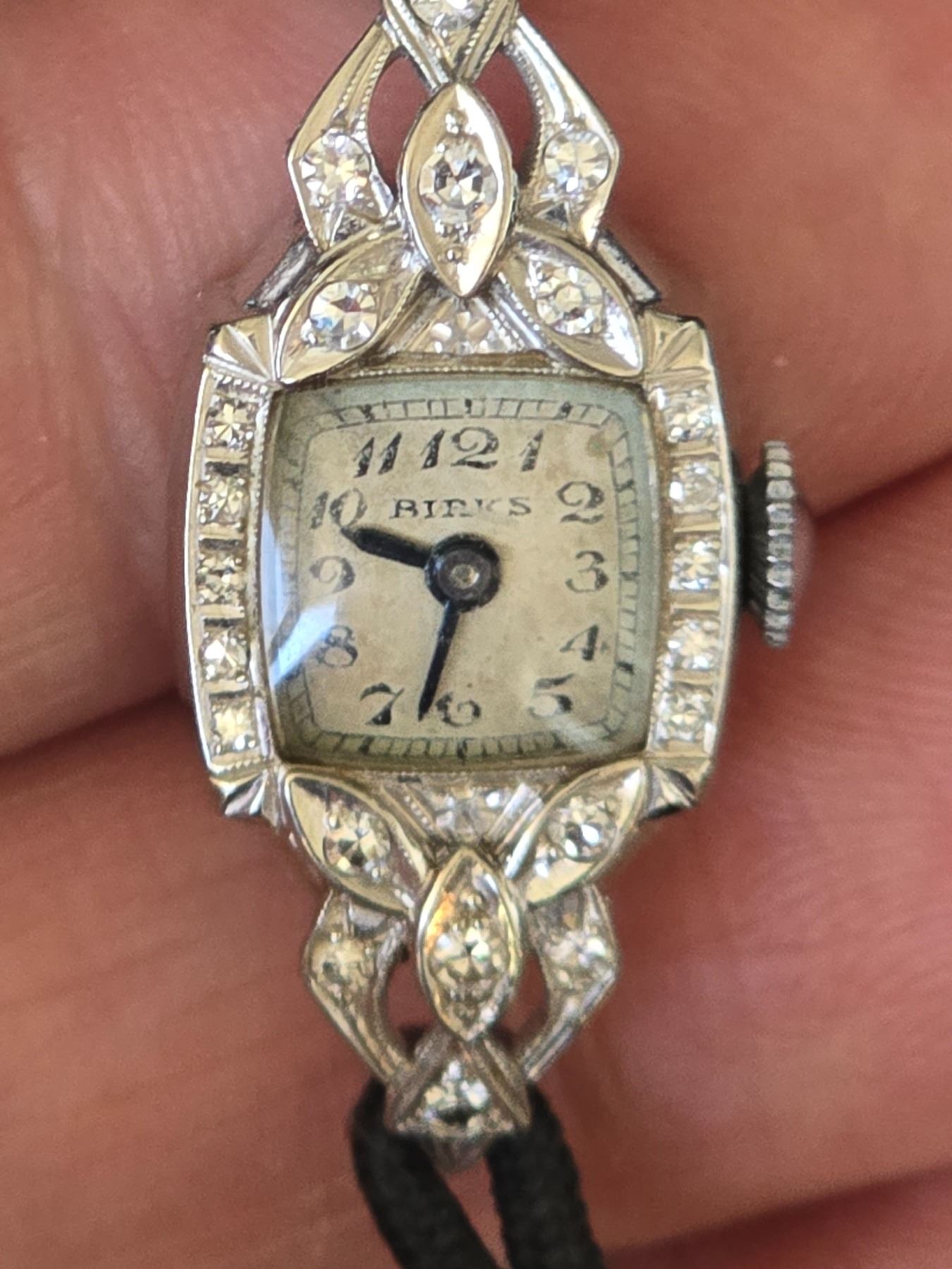 20.COLLECTOR LUXURY WATCH: Authentic Very Rare Art - Deco BIRKS Watch Solid 14k White Gold Case and Natural diamonds 1940’s Estimate: $ 2,000 - 3,000+ Step back in time with a rare piece of horological elegance. Up for bidding today is a truly exceptional collector’s item—an Art Deco Birks watch, meticulously crafted in 14 karat white gold and natural Diamonds This timepiece is not just a watch—it’s a chapter of post-war design brilliance. Manufactured in the 1940’s- 1950’s, this Birks watch captures the sleek, geometric aesthetic of the Art Deco movement, while transitioning gracefully into the mid-century modern era. Birks, often referred to as the “Tiffany’s of Canada,†has long been synonymous with luxury and refinement, and their Eterna line showcases the pinnacle of their Swiss watchmaking collaborations. Year: Circa 1940-1950 Style: Art Deco Case Material: Solid 14K White Gold and Natural Diamonds Dial: Original vintage dial, understated elegance with Deco-style numerals Movement: Precision Swiss mechanical movement – hand-wound Condition: Excellent vintage condition, well-preserved, with nice patina