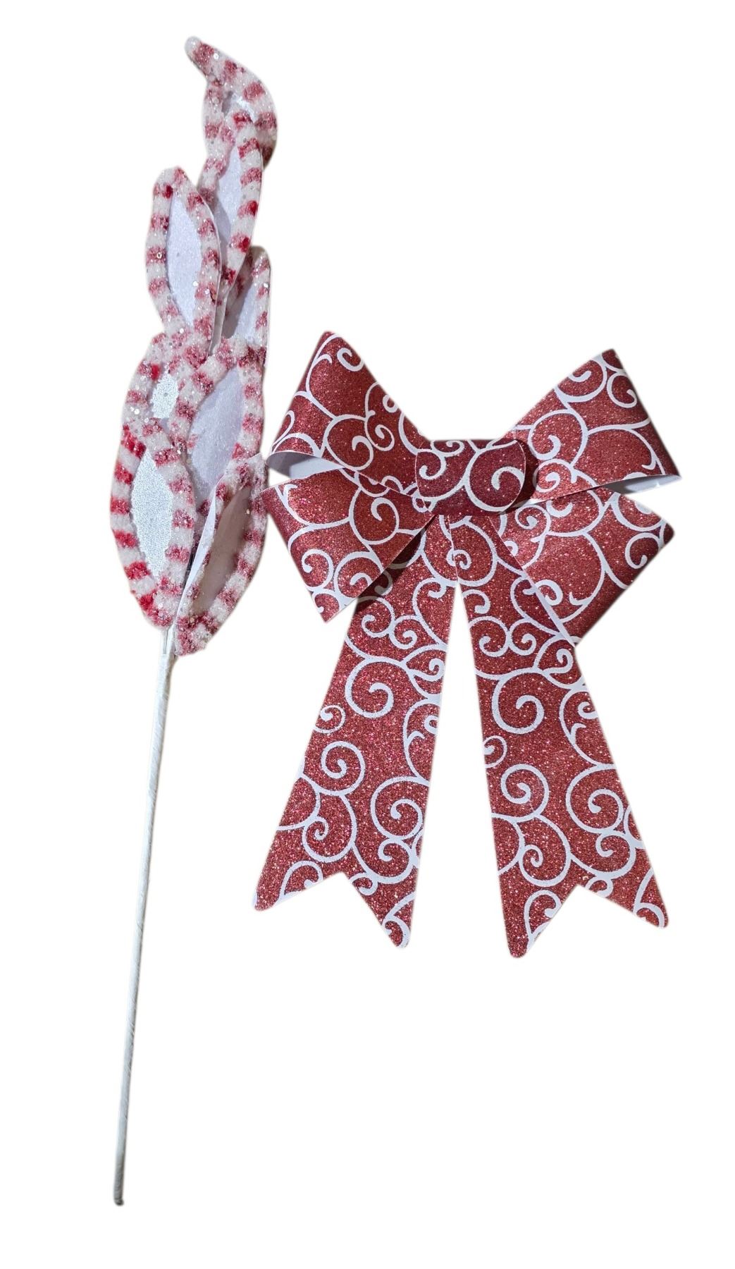 23 Pcs Bow Red/White and 48 Pcs Velvet Leaves (Christmas Forever - XM-HS5597/XM-R1652)