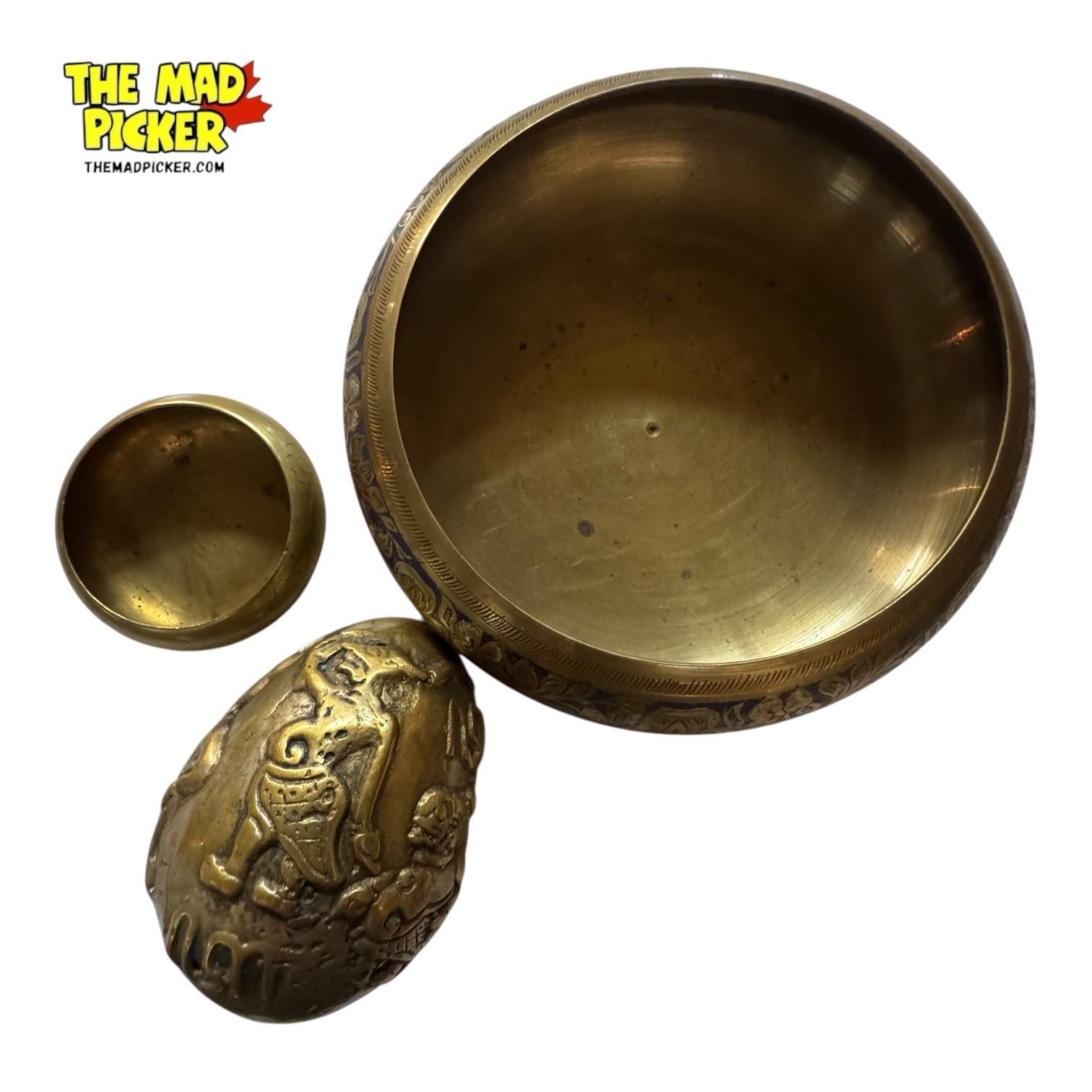2x Vintage Collectible Brass Items: Bowls & Egg
