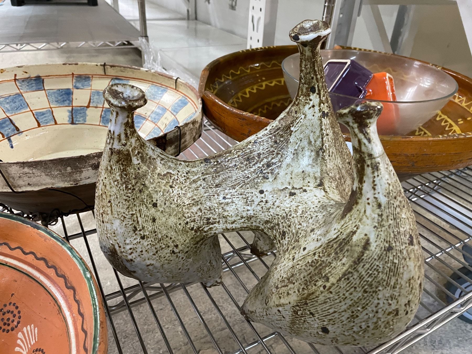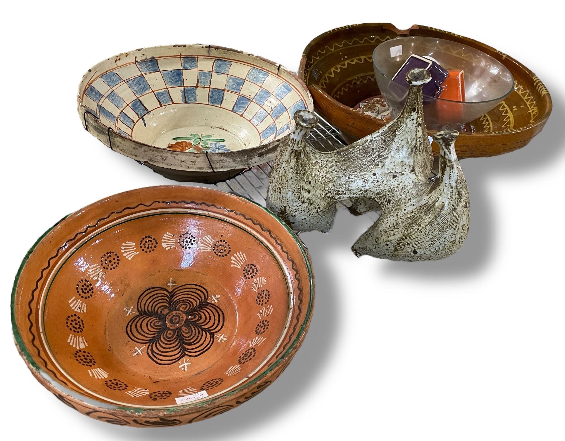 3 Large Handcrafted Decorative Pottery (Condition: One Chipped) and Sculptural Ceramic Piece