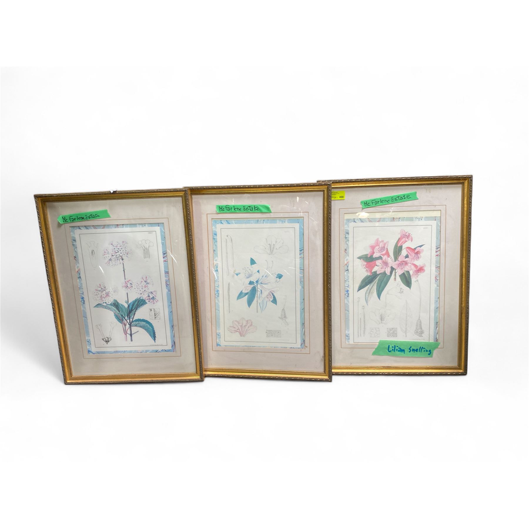 3 Lillian Snelling Botanical Prints - 18" x 24" framed