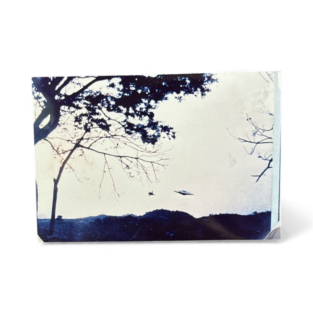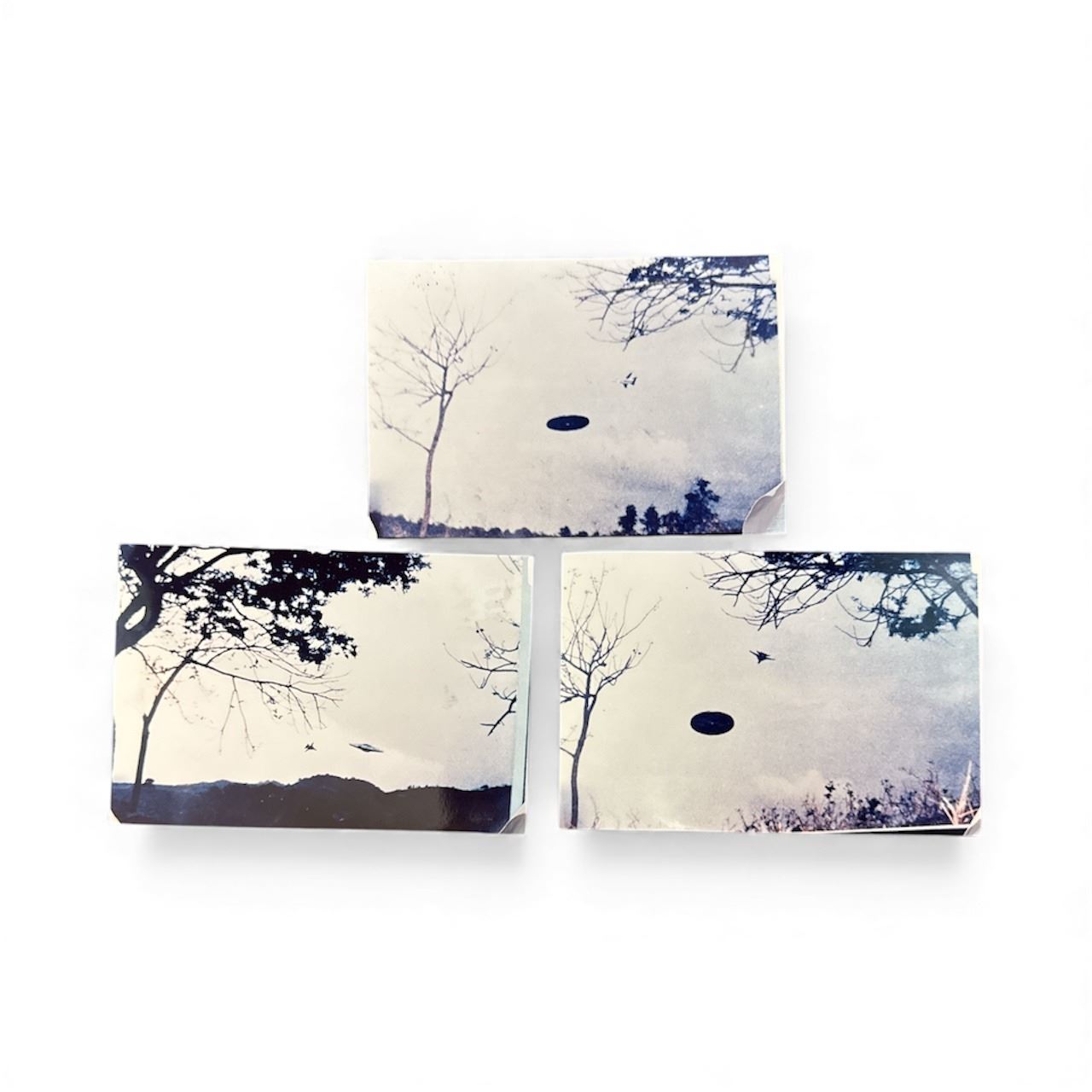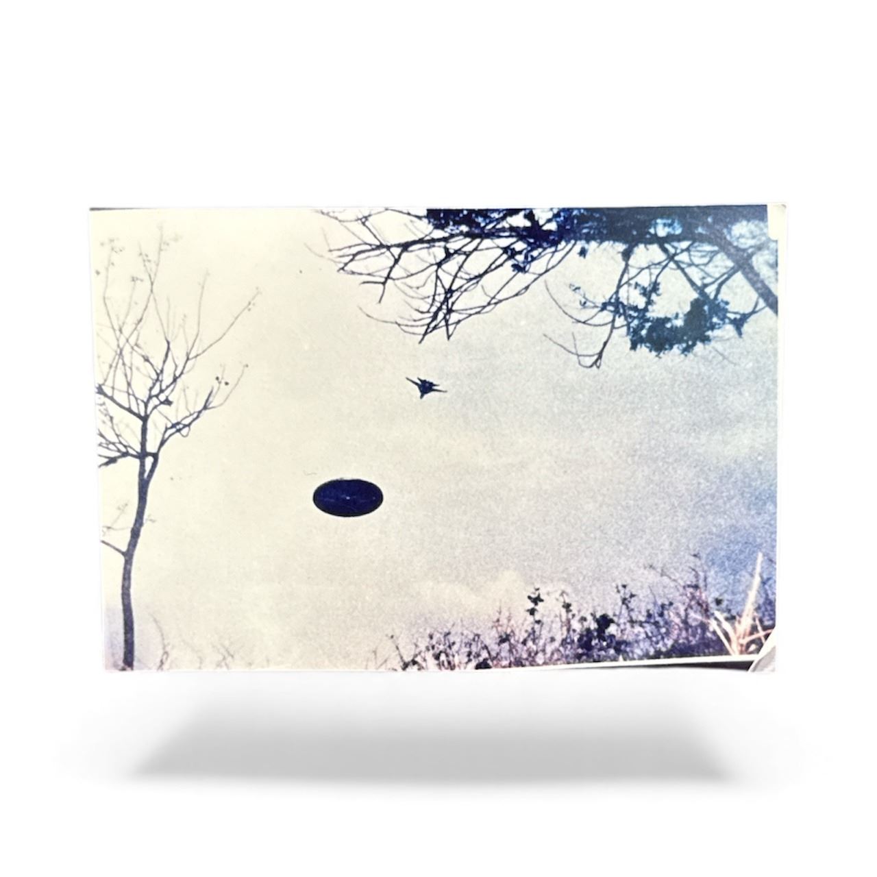 Incredible sequence of pictures taken by Amoury Riverz showcasing a detaild flying disc shaped UFO being chased down by an American fighter jet - Photo is from the "Wendelle Stevens Collection" - Wendelle Stevens was a USAF Pilot that witnessed UFO's during his tenure with the Air Force - He spent his retirement travelling the world collectiing photographs and speaking with people who have witnessed UFO's. Photograph(s) come with licensing release to publish / produce.