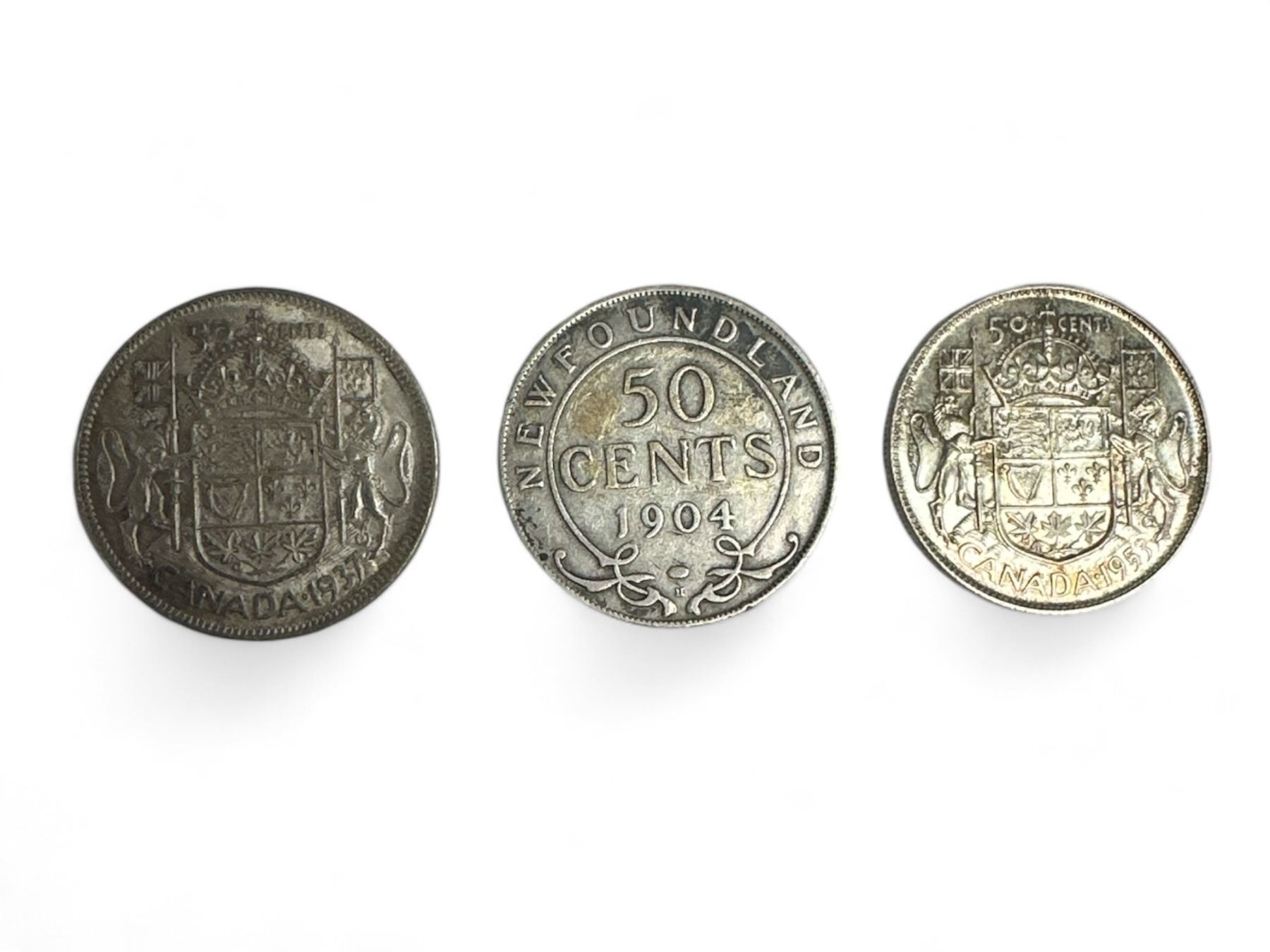 3 Vintage Canadian Silver 50Cent Coins: 1904, 1937, 1953