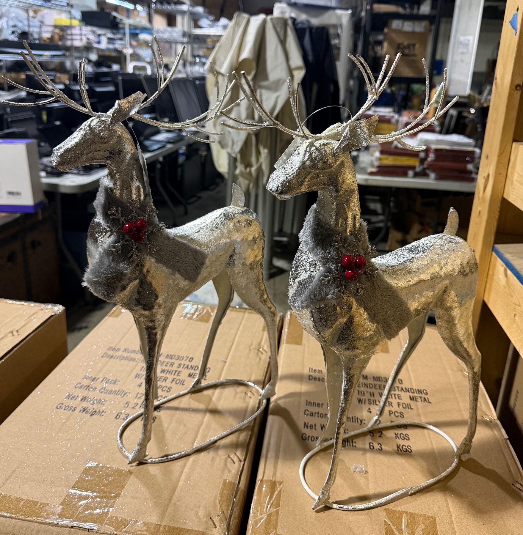 3 boxes (12 Pcs) Reindeer Standing H19" White Metal w/silver Foil (Christmas Forever - XM-MD3070)