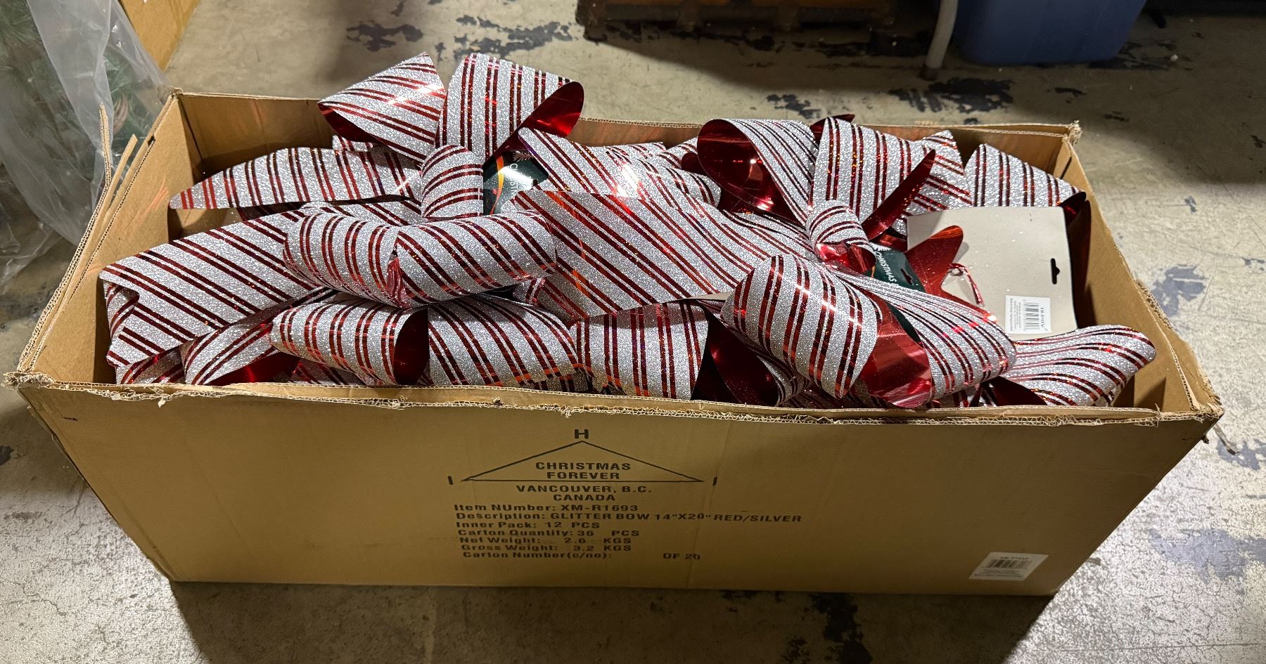 36 Pcs Glitter Bow 14x20" Red Silver (Christmas Forever - XM-R1693)