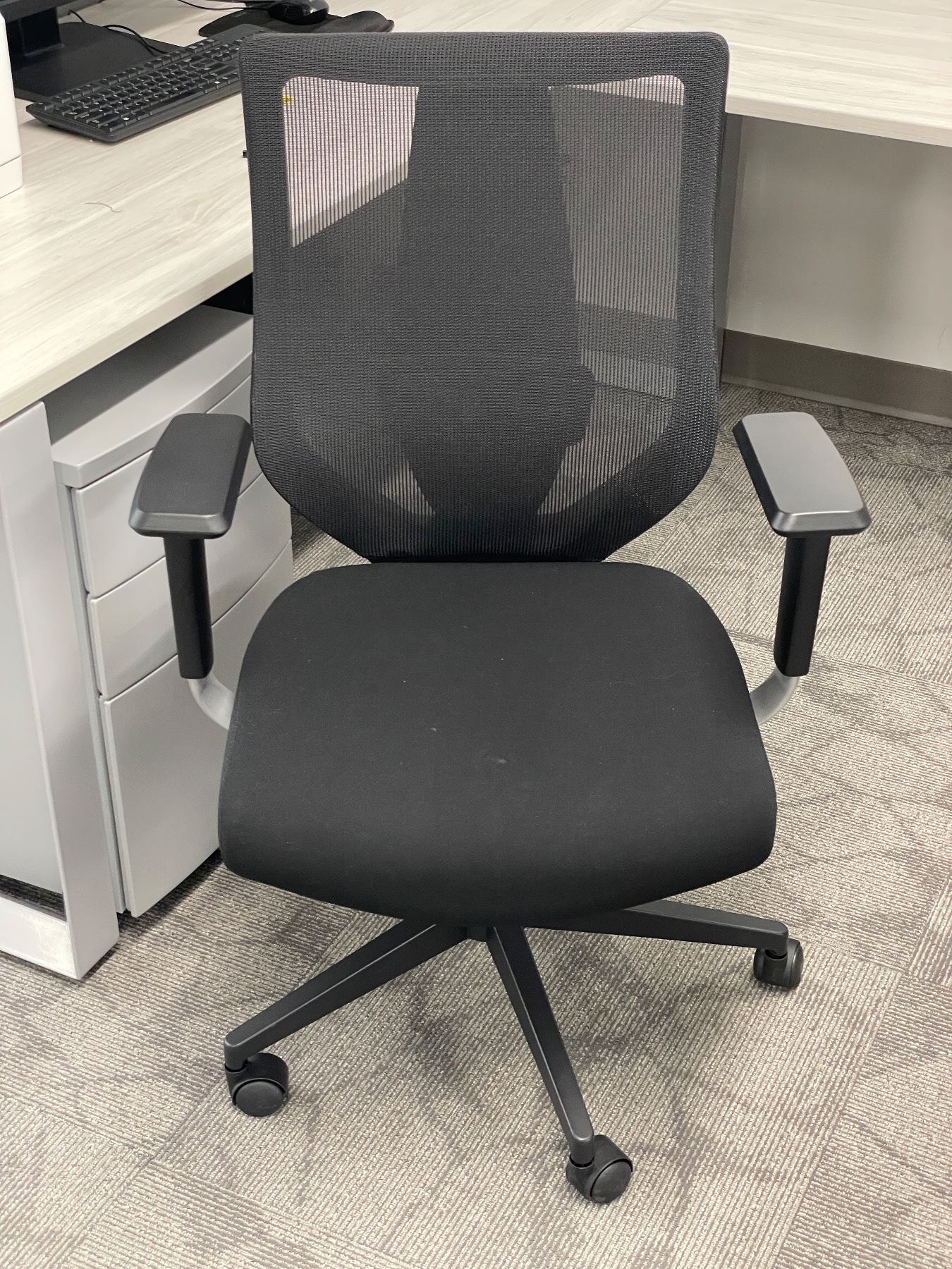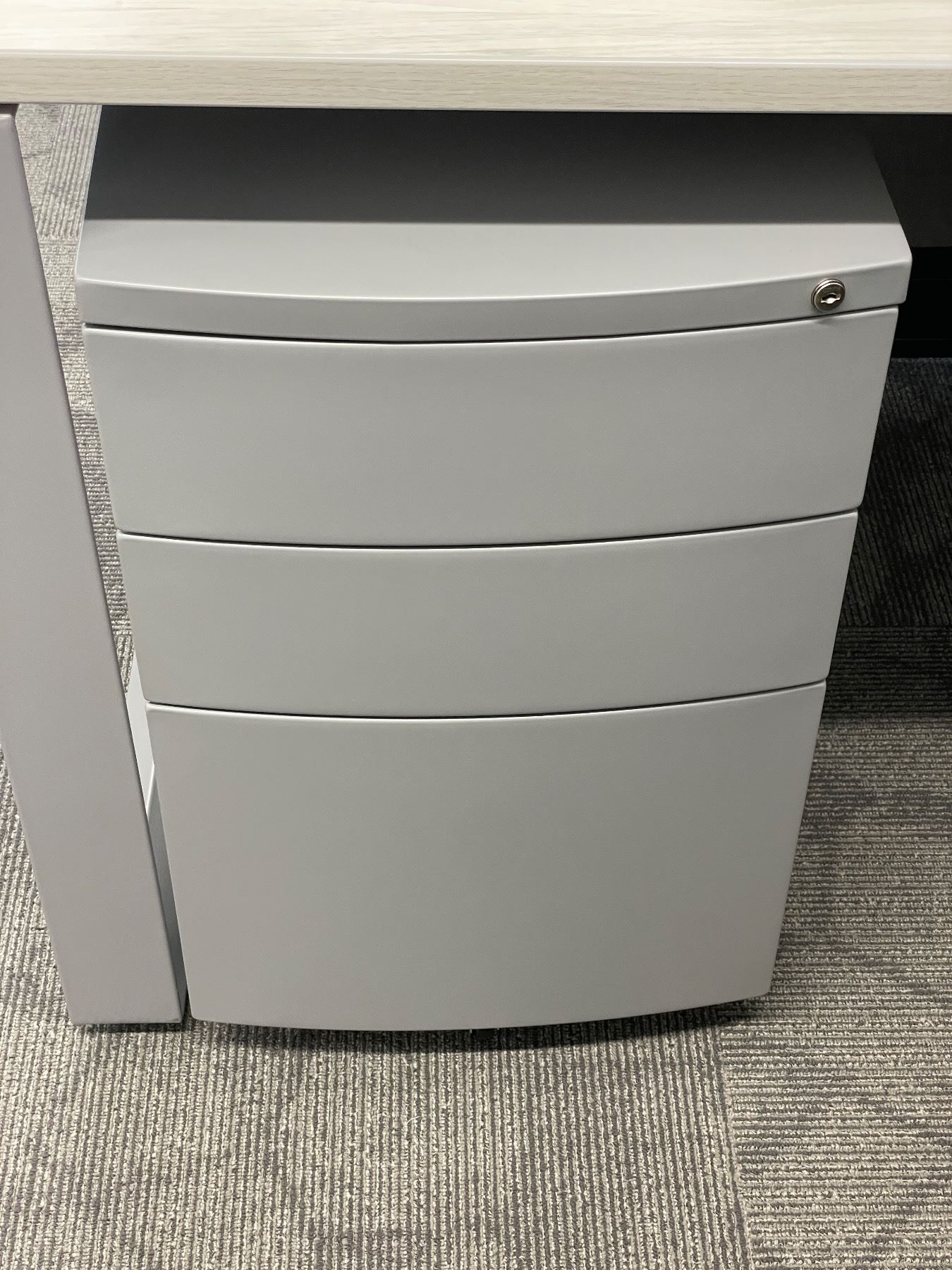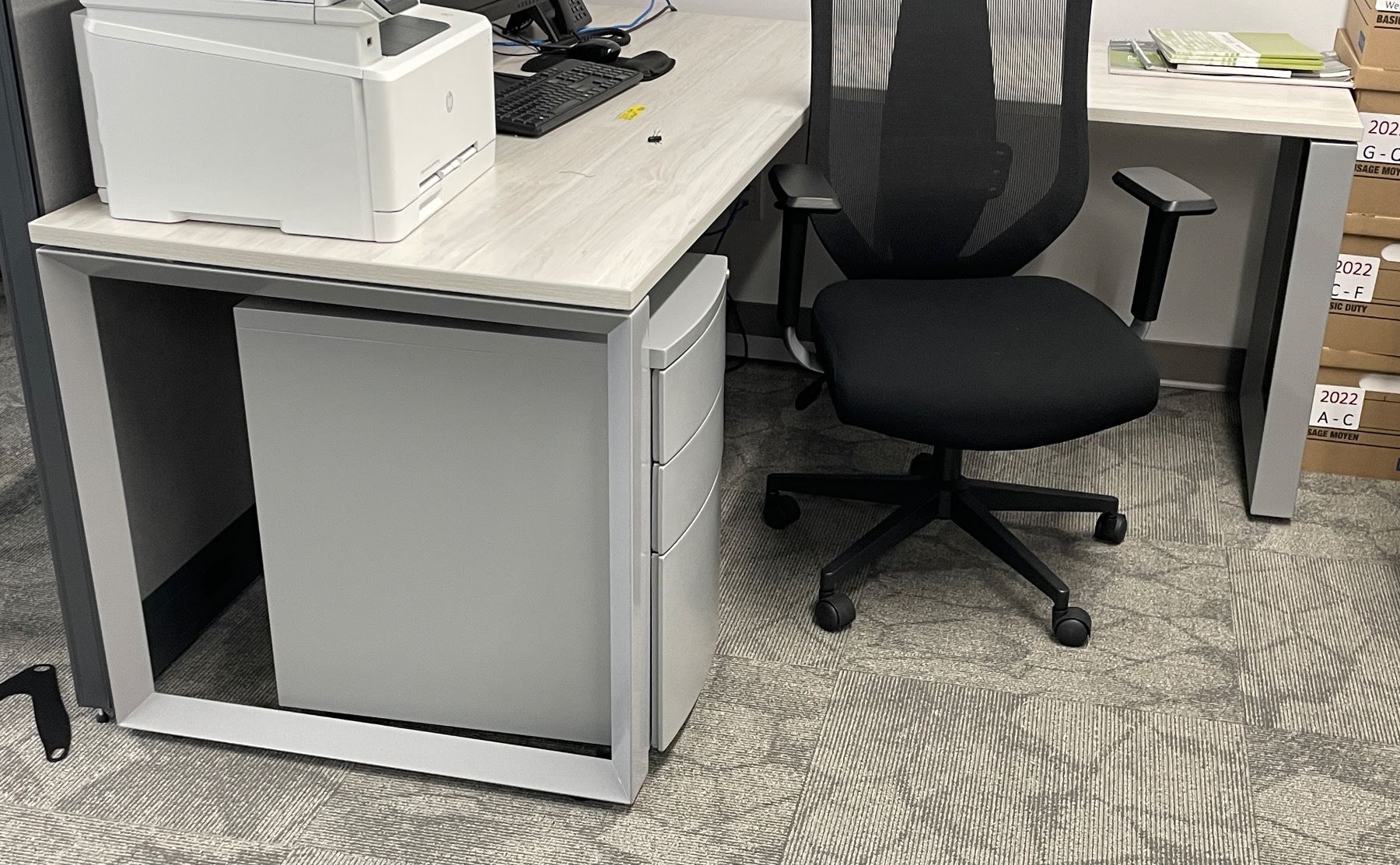 3pc office furniture lot - includes contemporary woodtop L desk w/ rolling filing cabinet & armchair