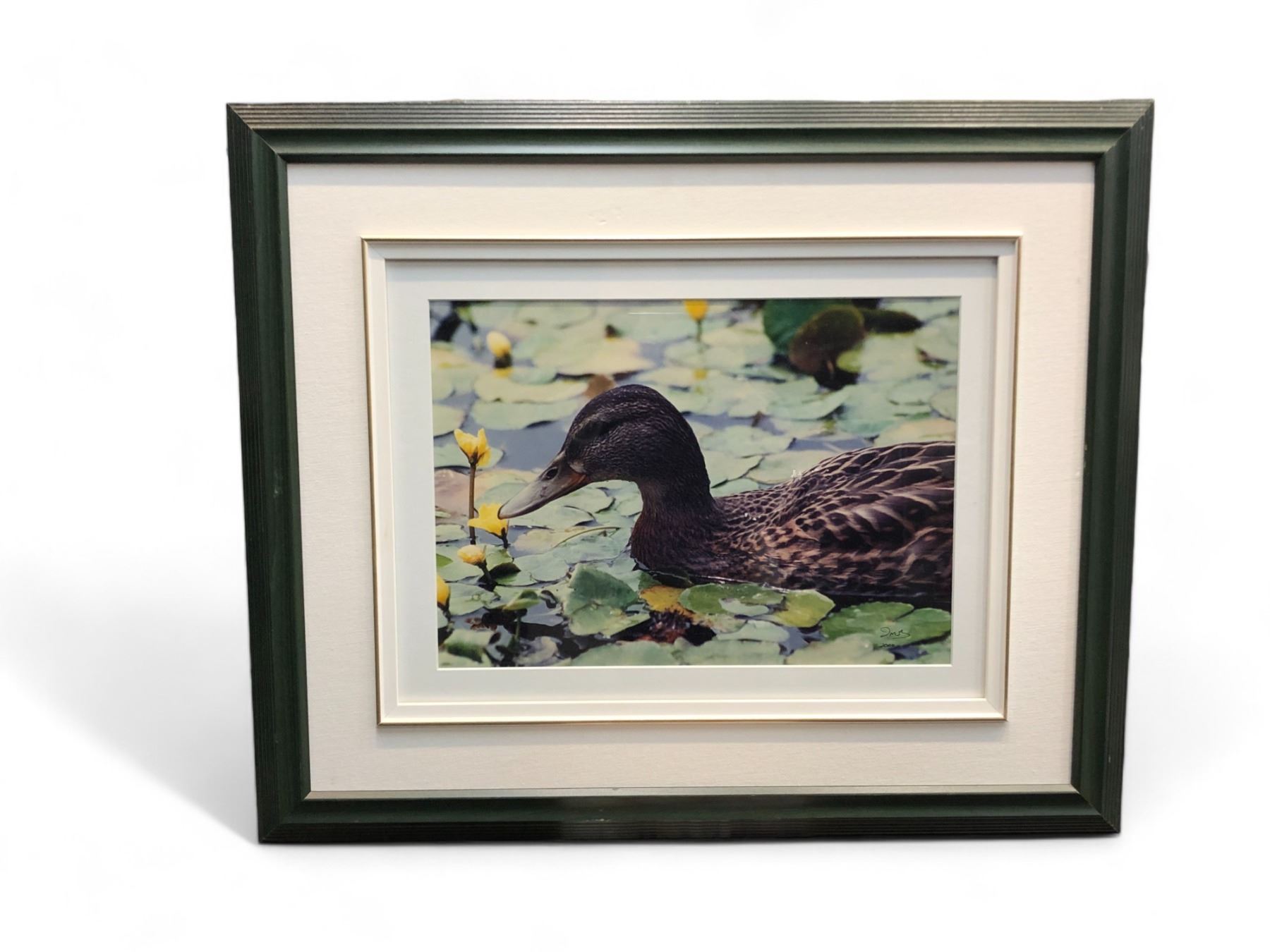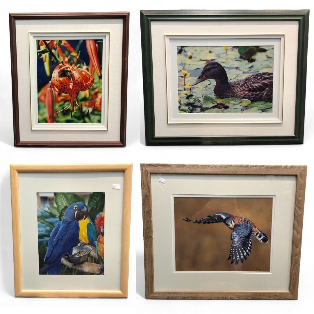 4 Assorted Framed Pictures, Duck, Parrot, Flowers, And Bird