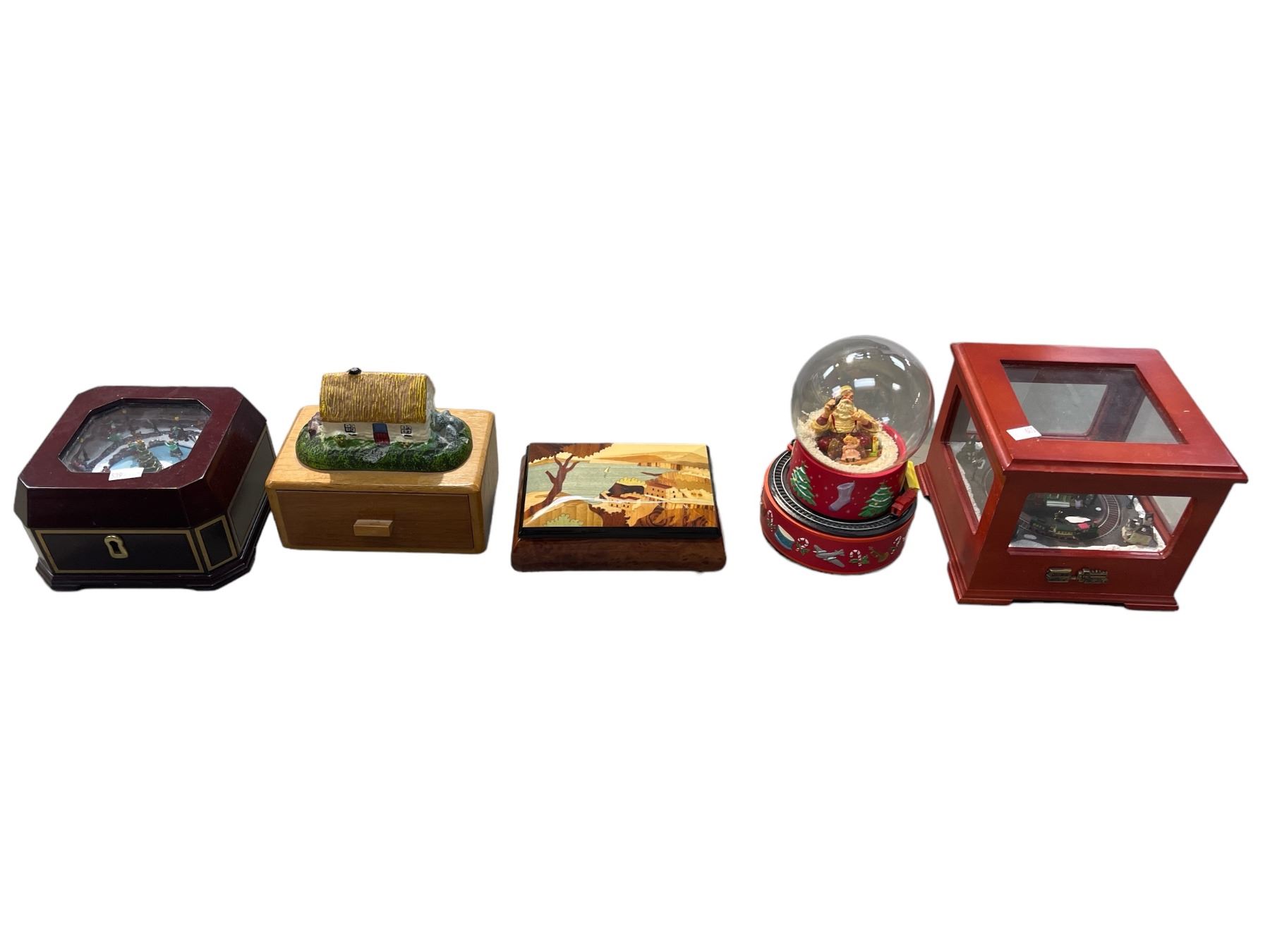 4 Musical Jewelry Boxes And Musical Santa Snow Globe