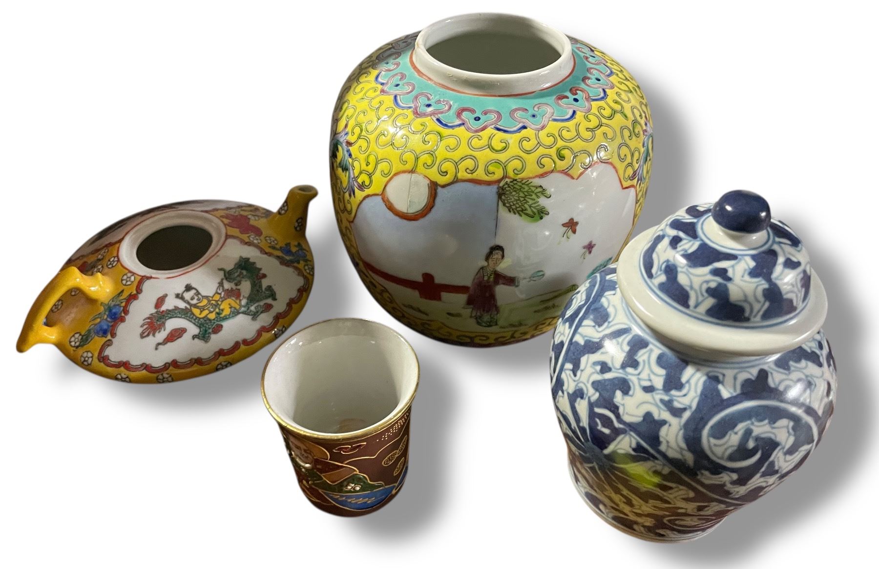 4 Piece Group of Asian Porcelain Items - Teapot and Ginger Jar are missing the lids