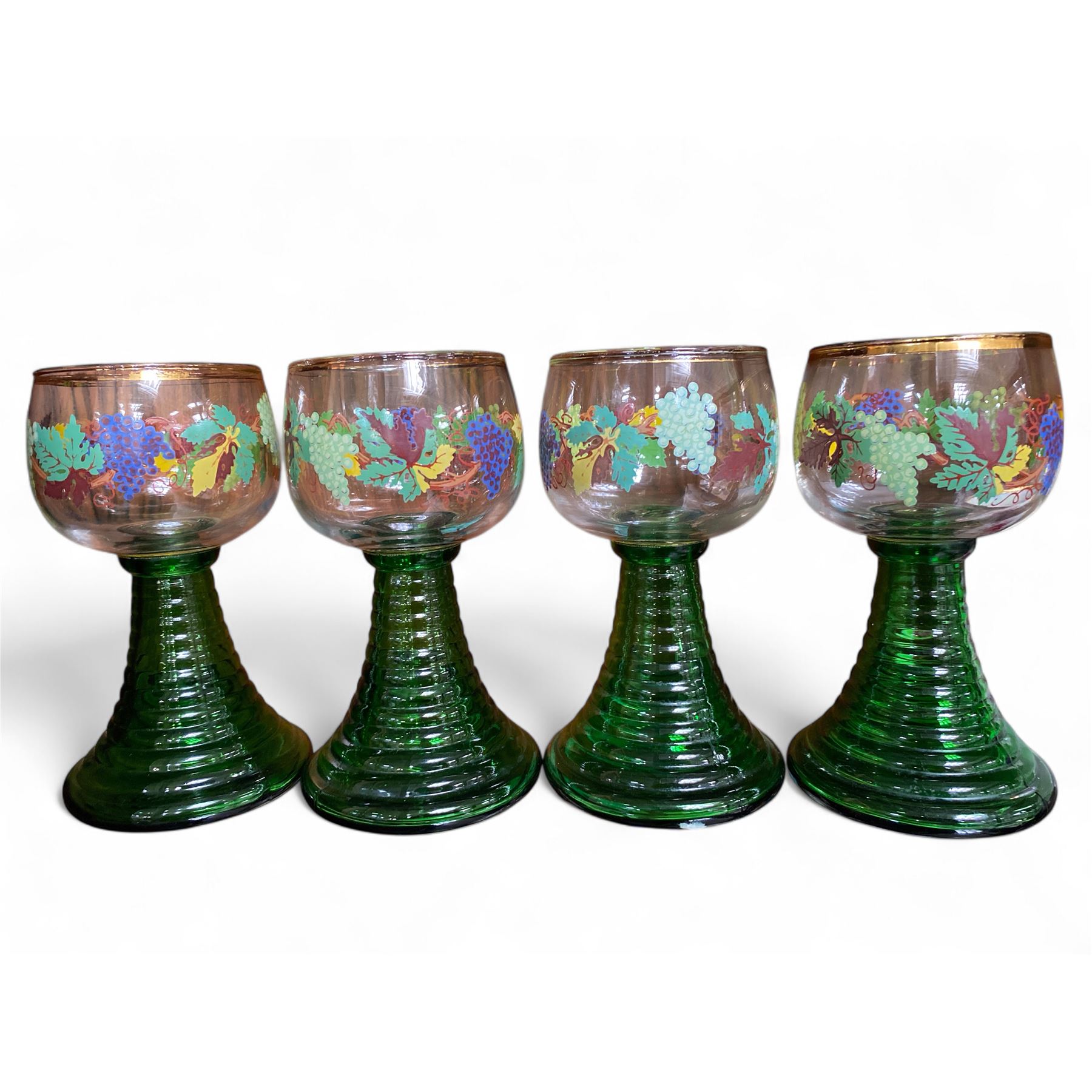 4 Vintage Bohemian Wine Glasses - 6" tall