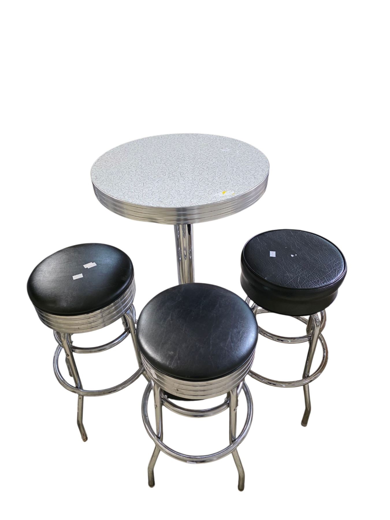 42  Tall Chrome Table with 3 Matching Stools - 24   White & Black Patterned Top