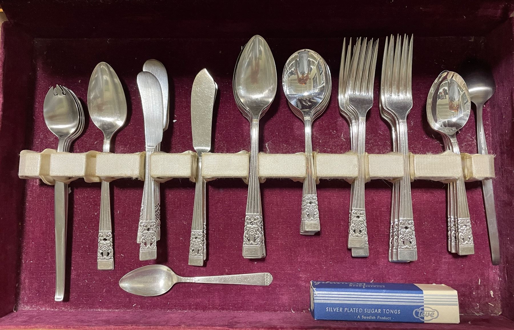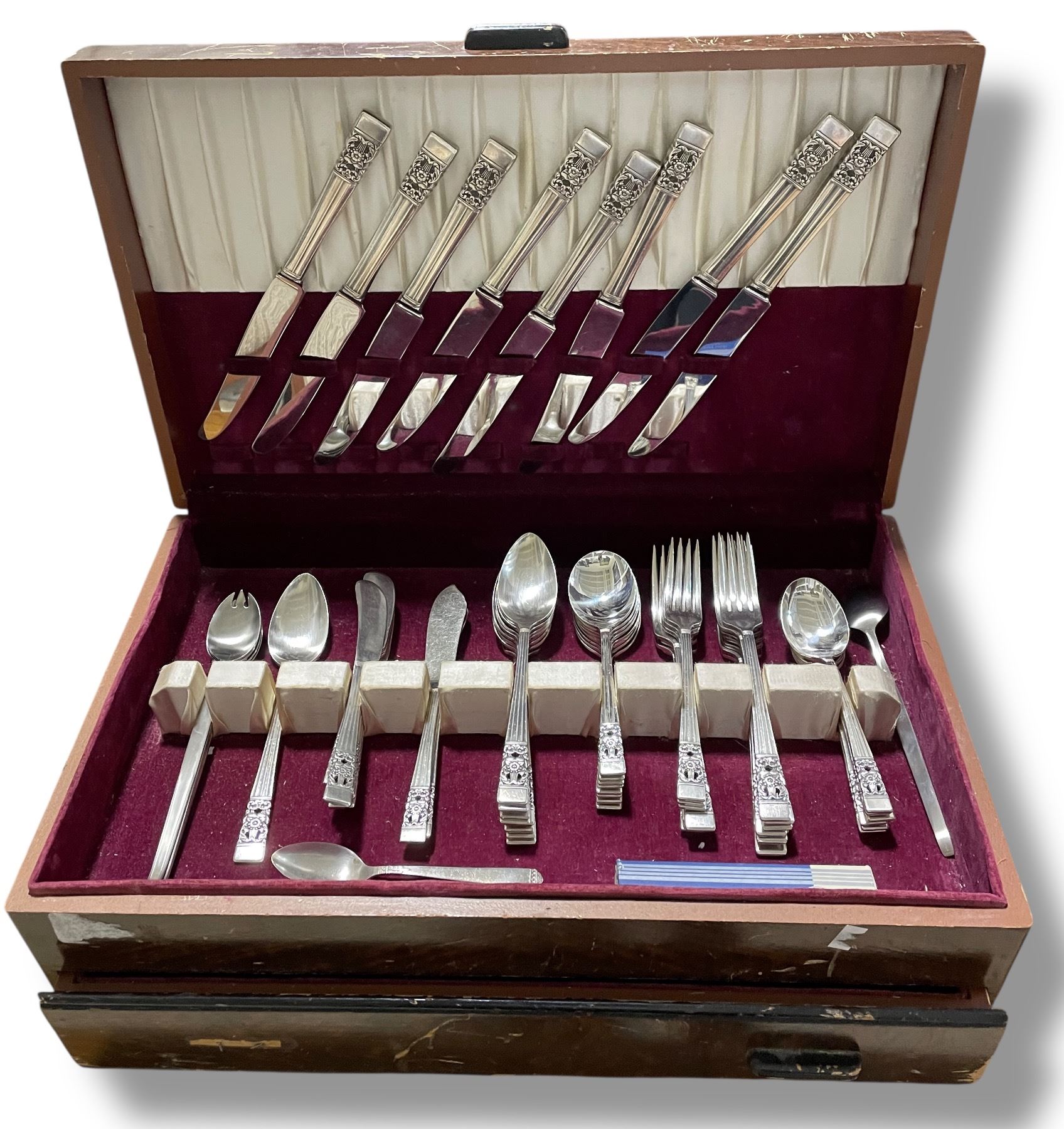 50+ Pcs Vintage Community Plate (Oneida) Silverplate Flatware Set with Wooden Case