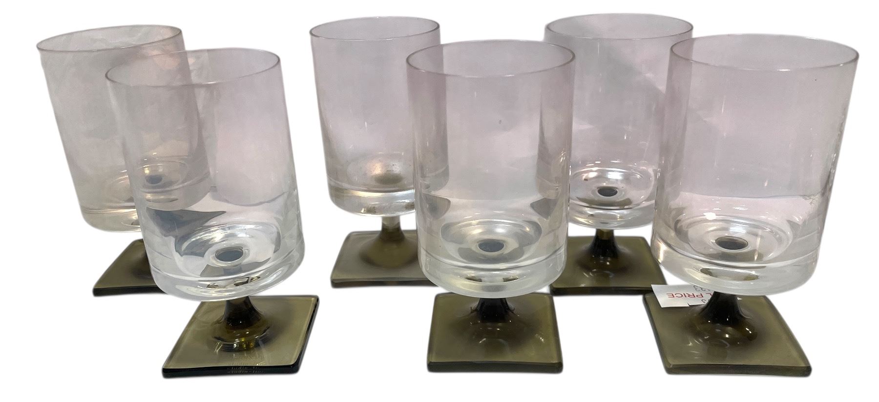 6 Vintage Rosenthal "Linear Smoke" 4.25" Wine Glasses
