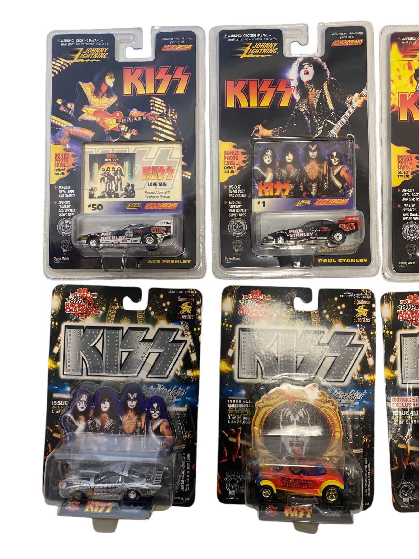 7 Kiss Toy Cars In Original Blister Packs, Johnny Lightning, Racing Champions, Etc..