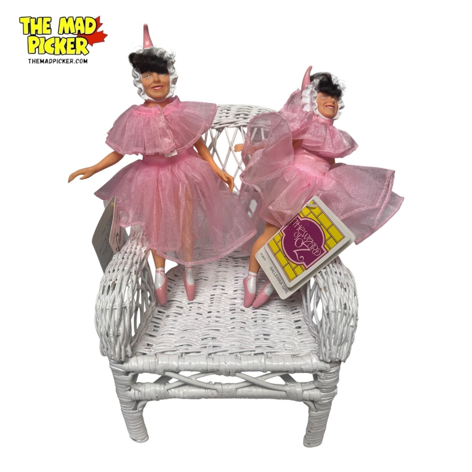 7 "Presents" Wizard of Oz Dolls with Tags & 1 Wicker Doll Chair