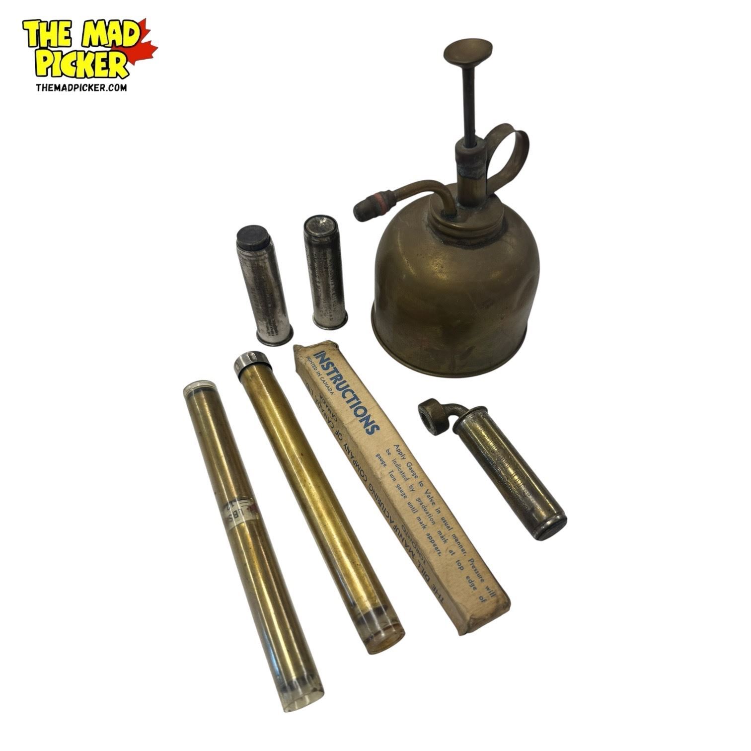 7x Vintage Car Tools: Brass Oiler, Tire Pressure Gauges ( Schrader & Dill)