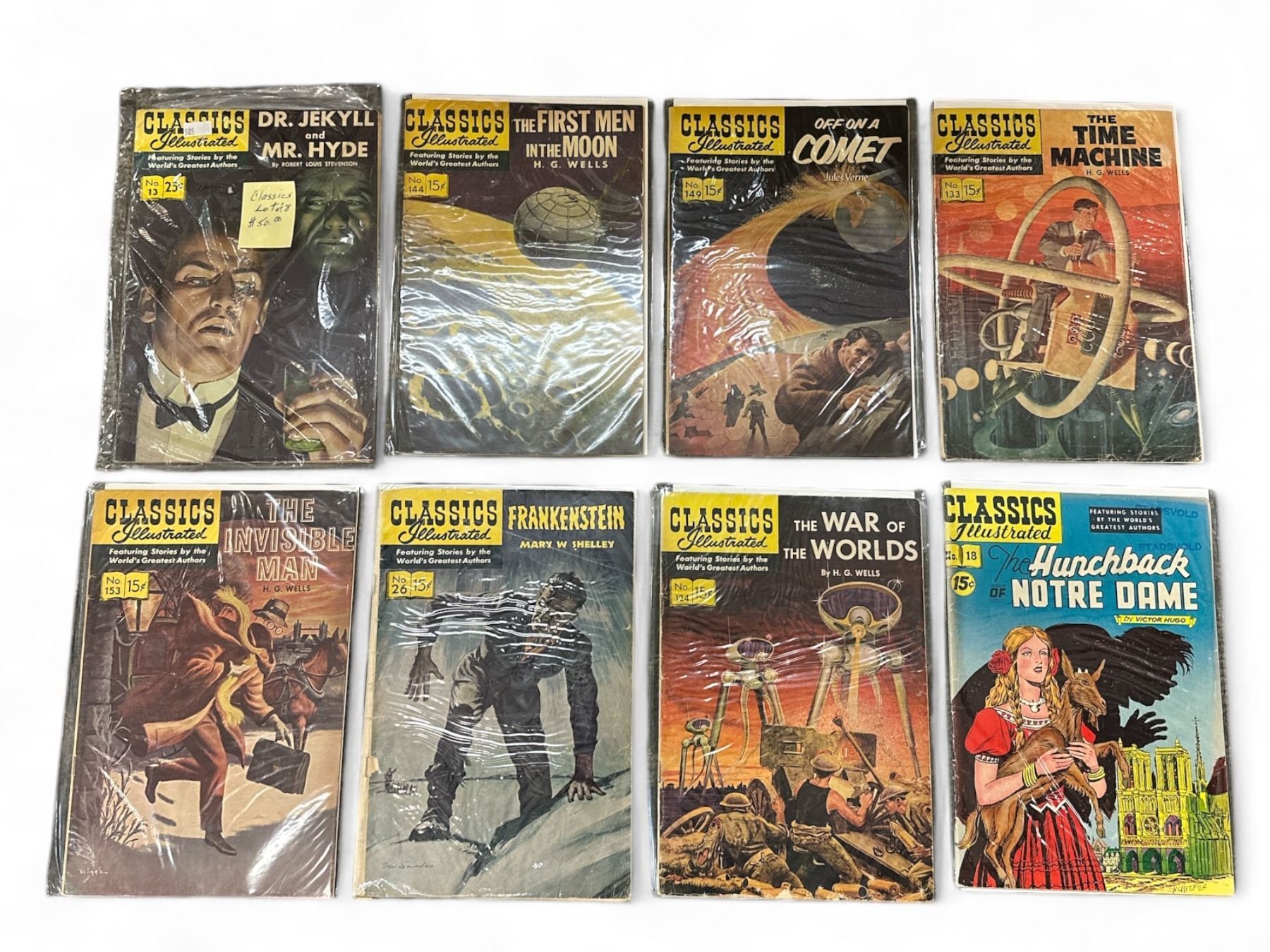 8 Assorted Classics Illustrated Comics, The Time Machine, The War Of The Worlds, Frankenstein, Etc..