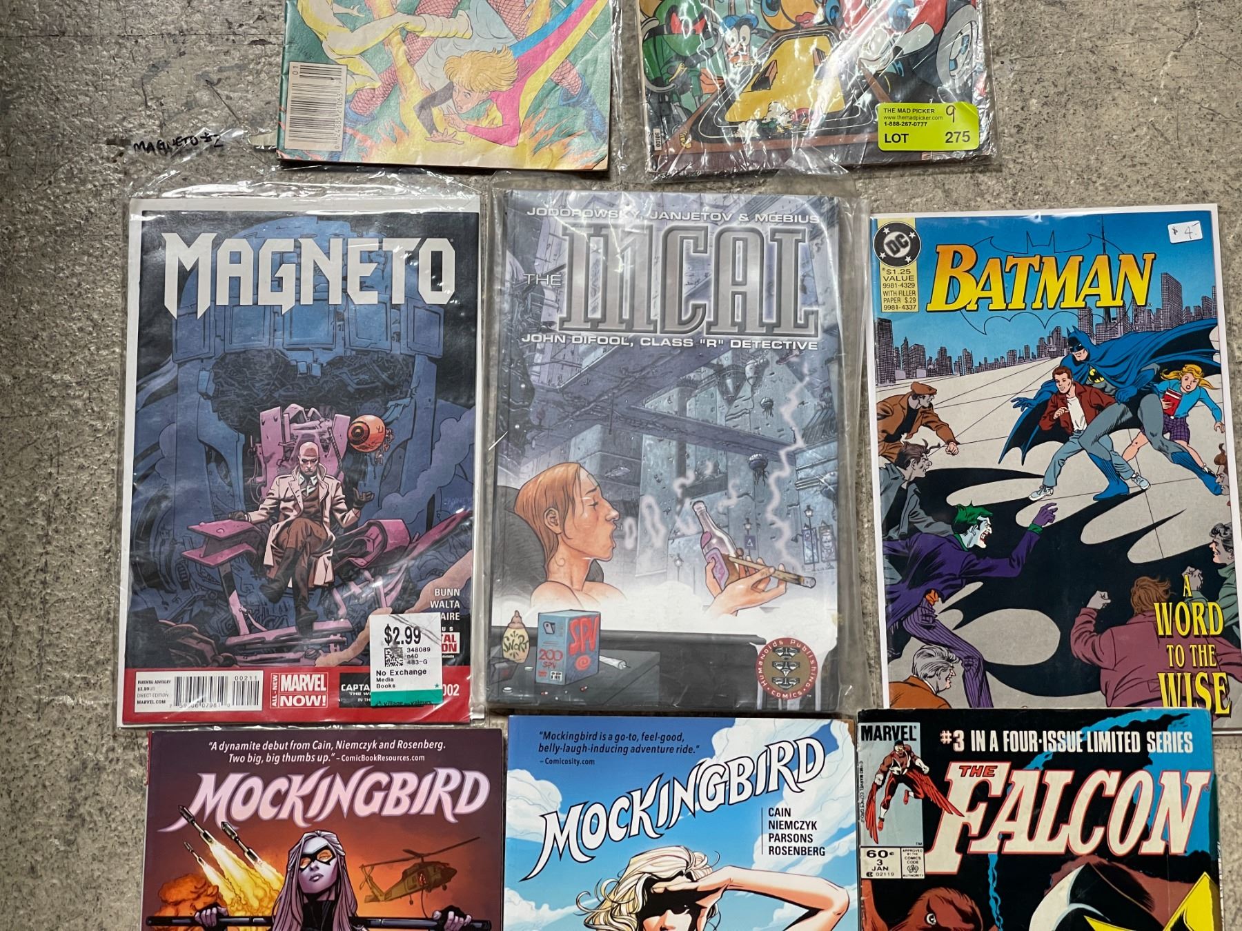 8 Assorted Comics and Graphic Novels - Magneto, Batman, Wheelie and the Chopper Bunch Mockingbird and more