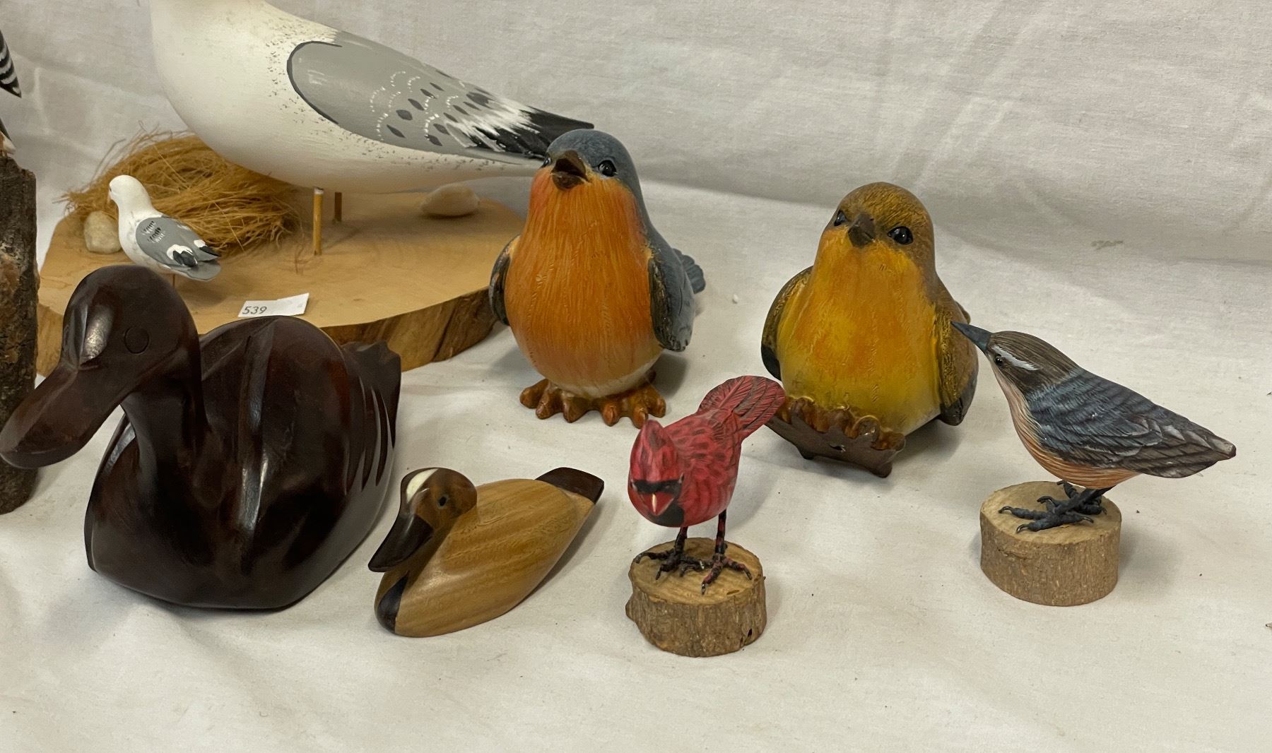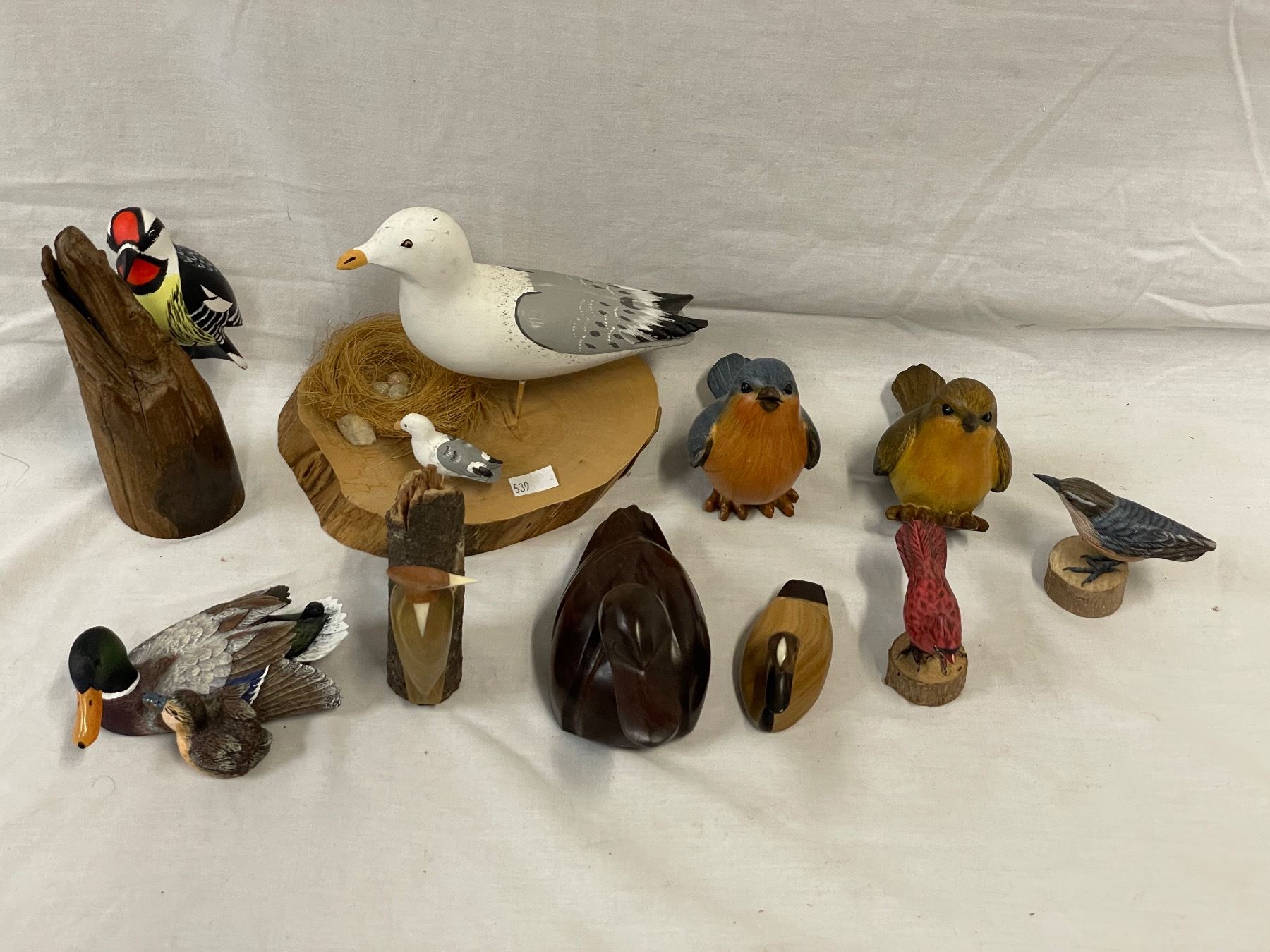 9 Wood And Resin Carved Birds, Seagull, Woodpecker, Ducks, Etc..