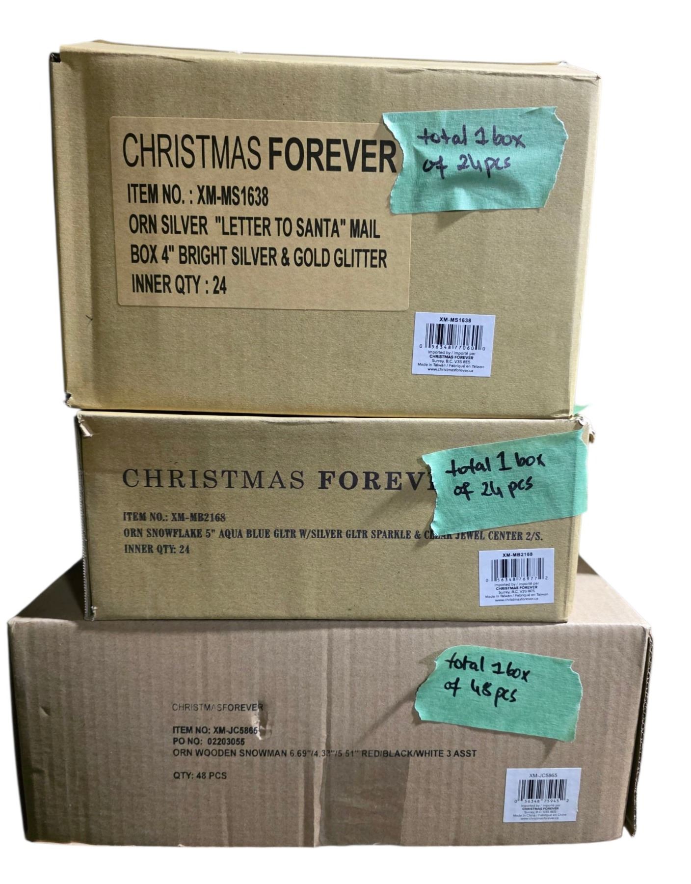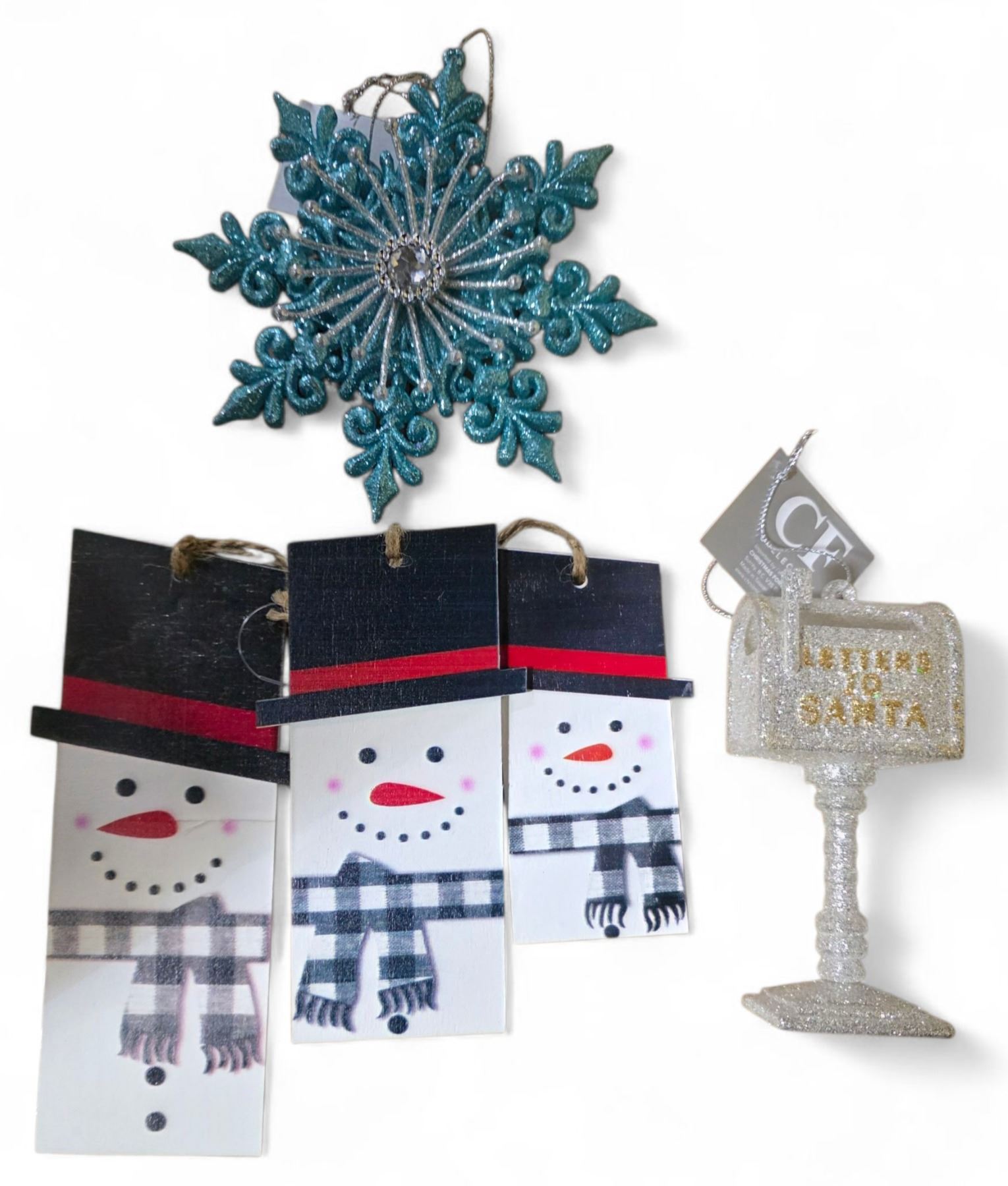 96 Pcs Assorted Ornament Includes "Letter to Santa", Blue 5" Snowflake, Wooden Snowman 6.6" (Christmas Forever - XM-MS1638/XM-MB2186/XM-JC5865)