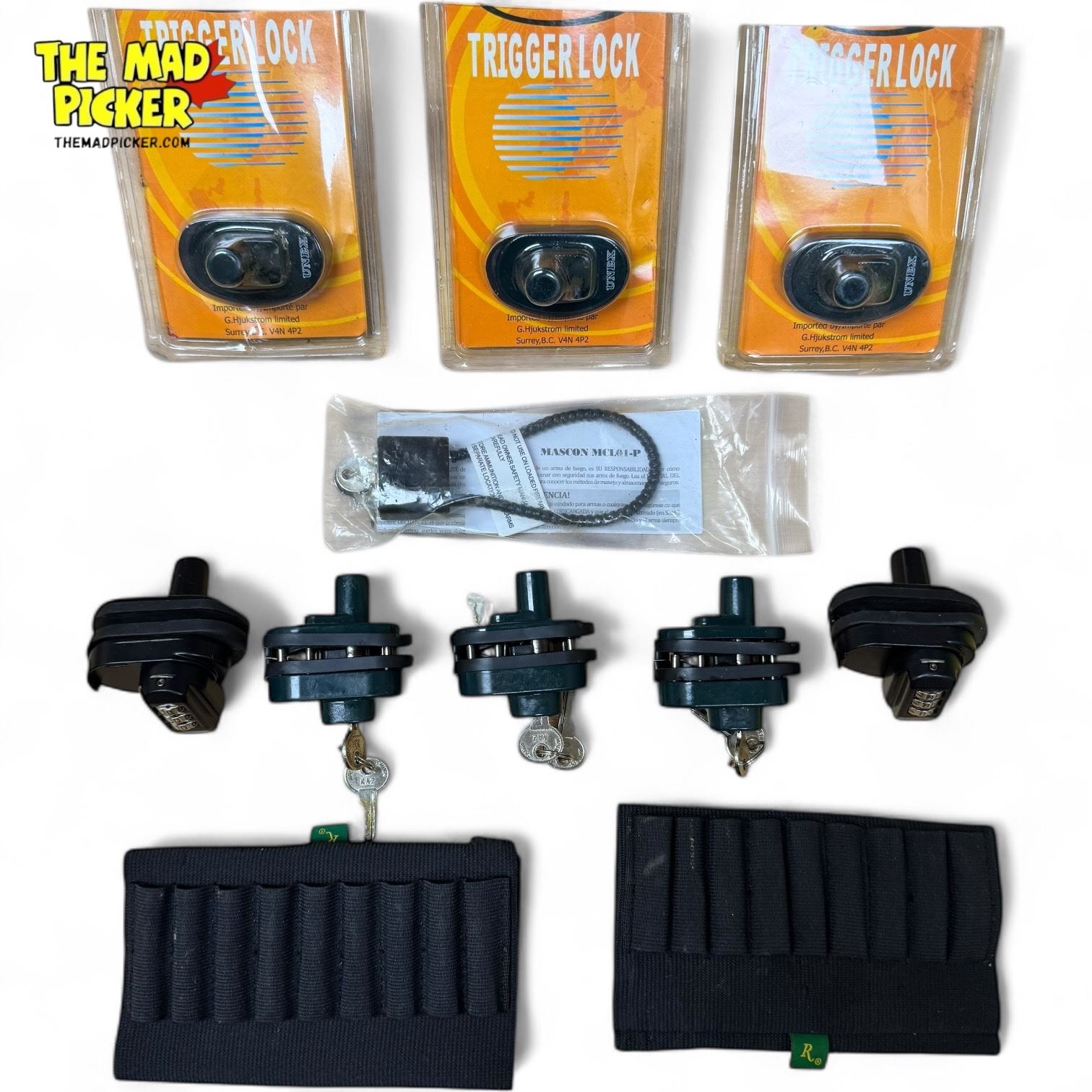 9x Firearm Locks & 2 Rifle Butt Ammo Holders
