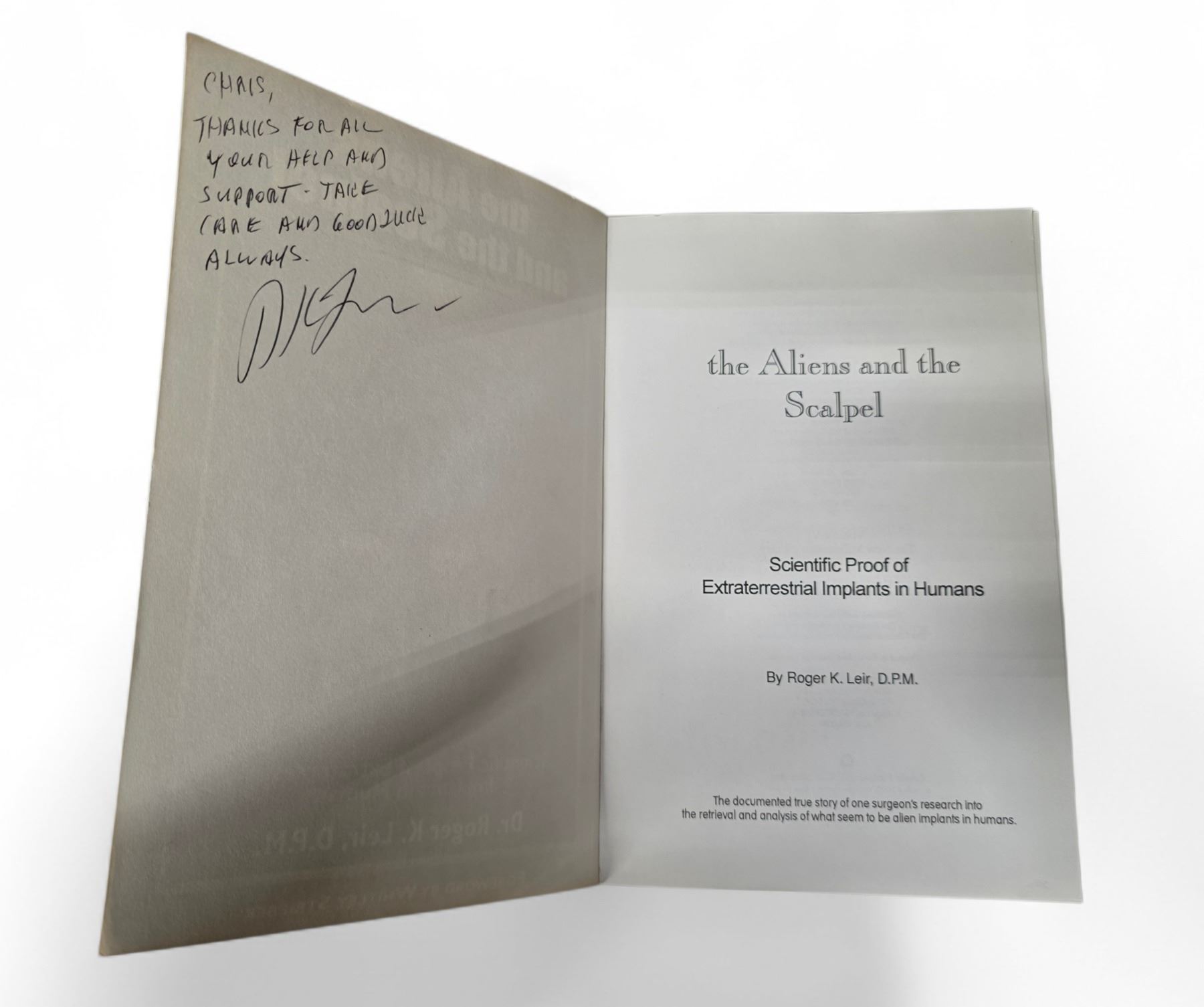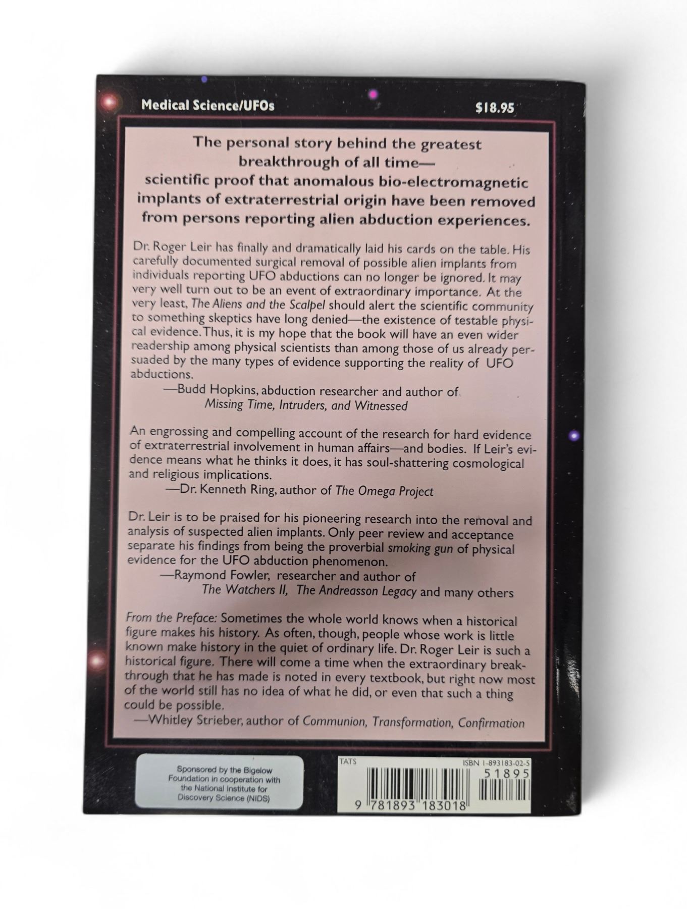 "Aliens & The Scalpel" by Dr. Roger Lear is a book detailing Lear's experience in removing ET implants from human beings - Dr. Lear has preformed a number of operations on patients removing implants that have been tested by multiple accredited labratories, investigting how they function and more. This book offers hard evidence that humans have been abducted and have had technology implated into them.
