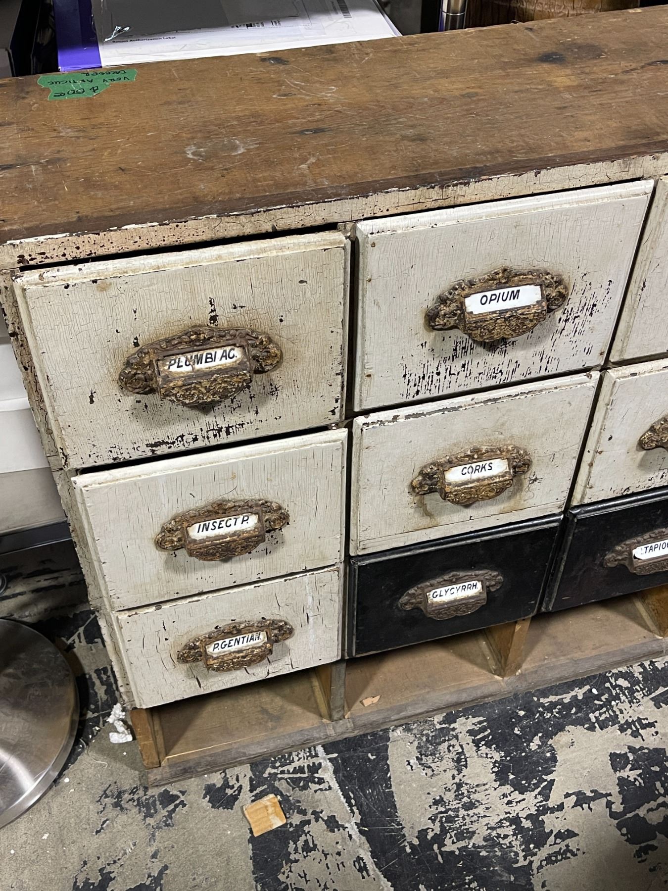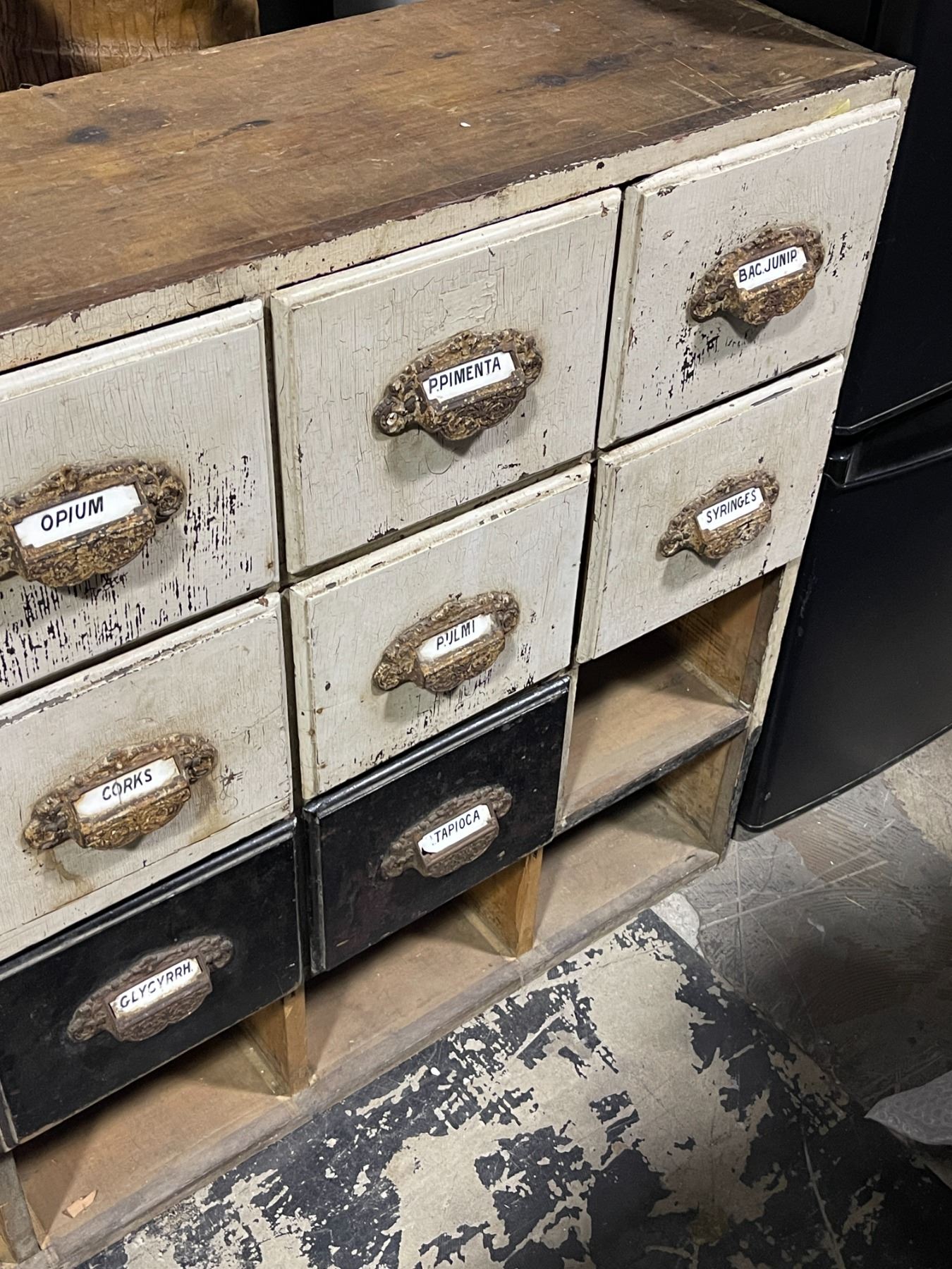 Antique Wooden Apothecary Cabinet - approx. 42" x 12" x 32" (missing some drawers)