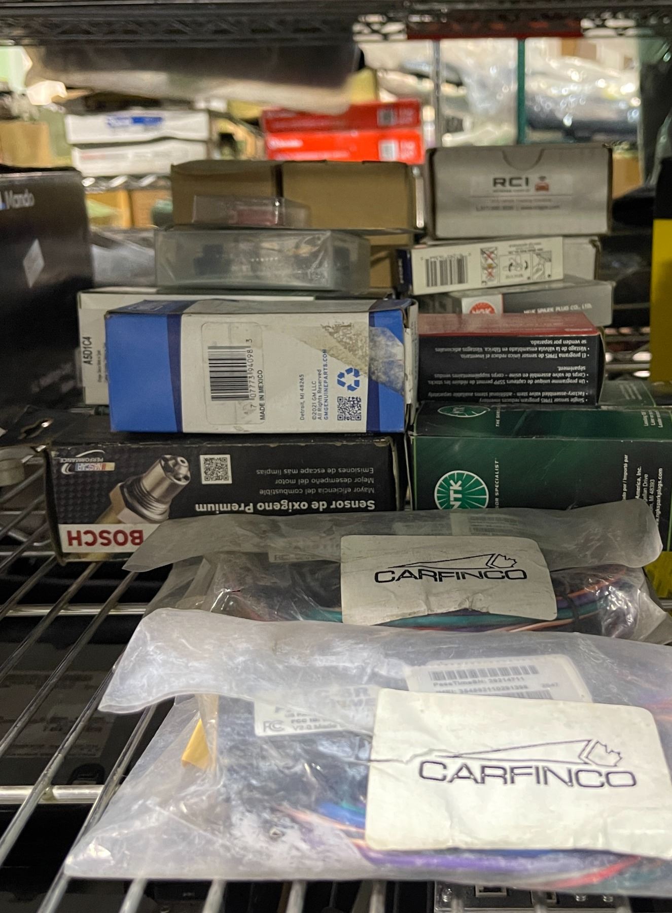 Assorted Car Electronic Parts - Sensors, Spark Plugs, Cables, and Accessories