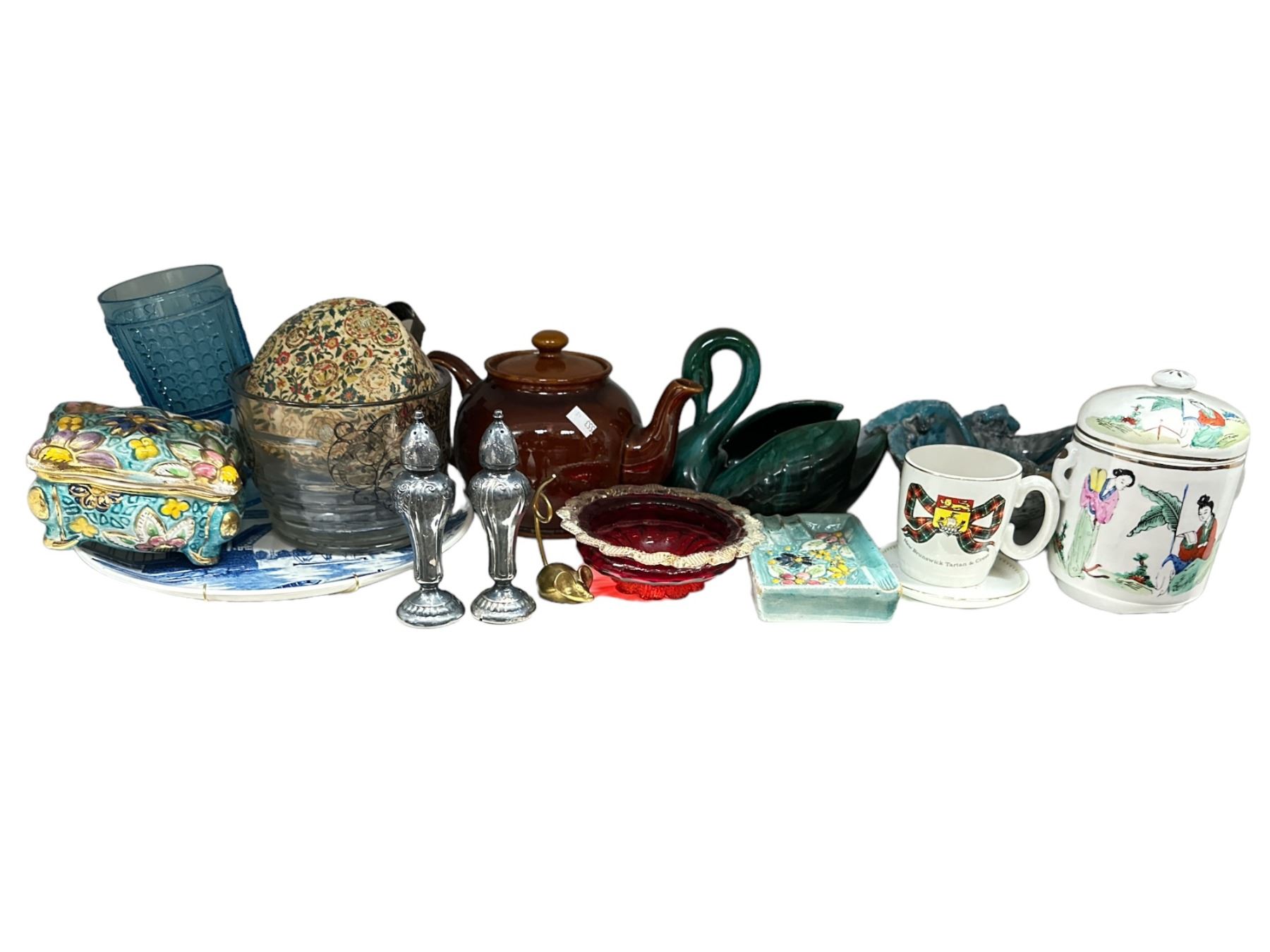 Assorted China And Pottery Collectibles, Teapot, Bowl, Salt And Pepper, Ginger Jar, Etc.…