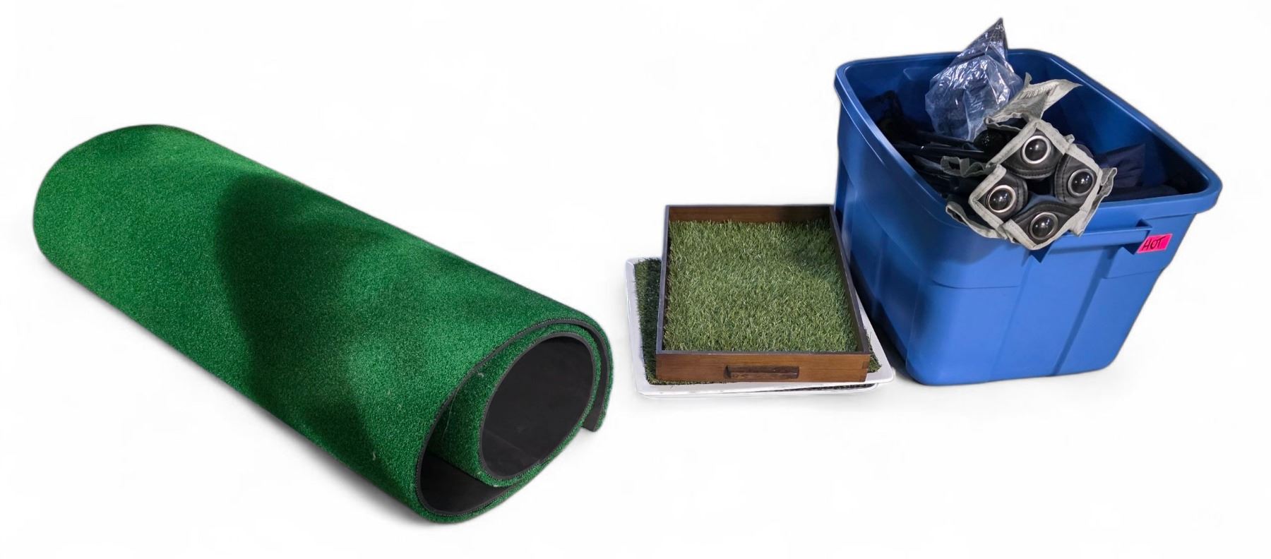 Assorted Items Includes Putting Mat, Blow Up Float, and hikenture Outdoor Sleeping Pads