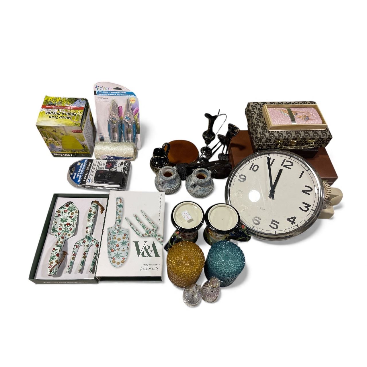 Assorted Misc Home Decor & Household Items - Garden Tool Set, Candles, Vintage Clock/Telephone and More