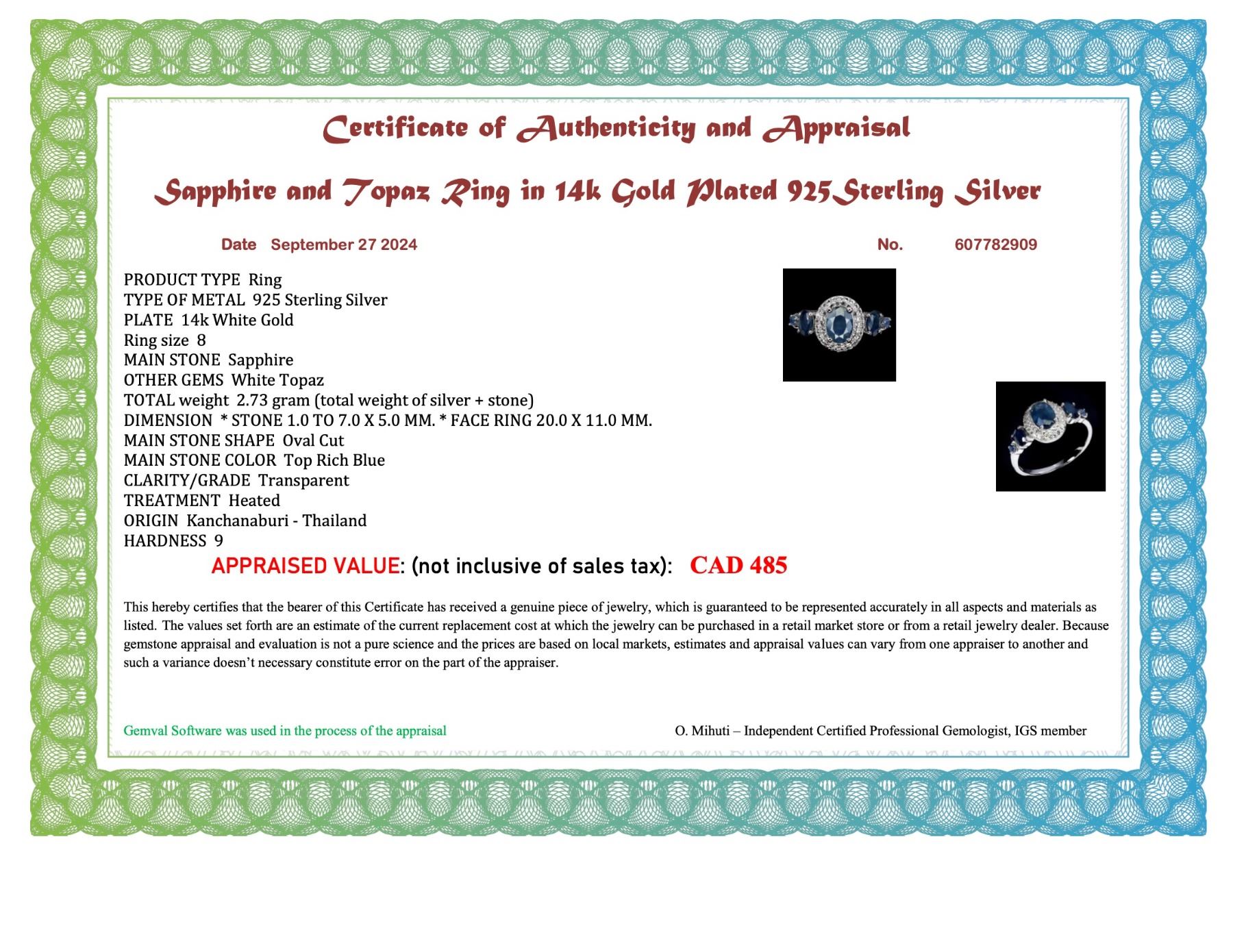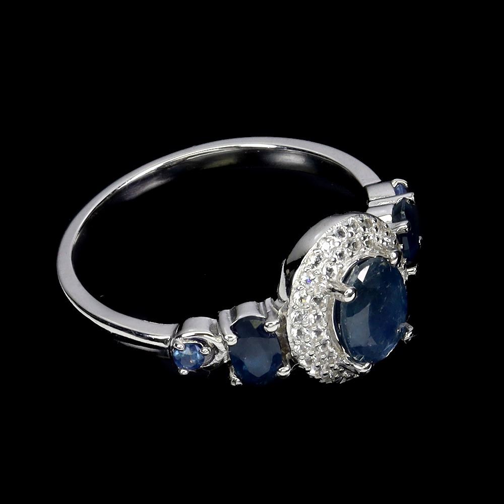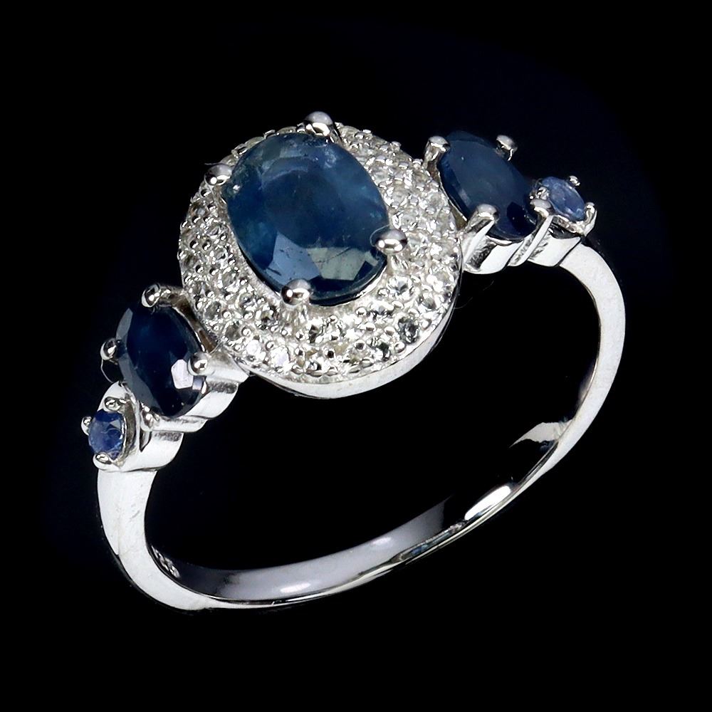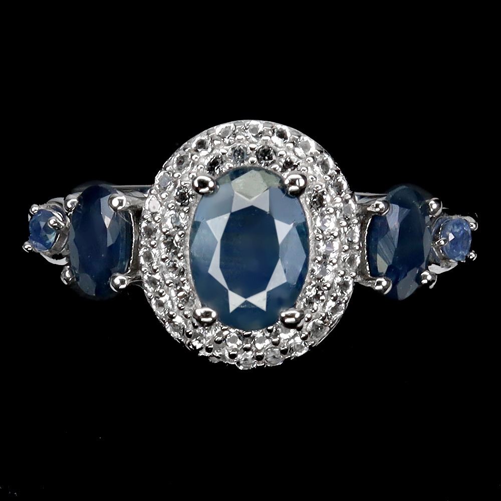 BLUE SAPPHIRE and WHITE TOPAZ Ring in 14 K Gold Plated 925 Sterling Silver – Size 8 - Appraised Replacement Value CAD 485