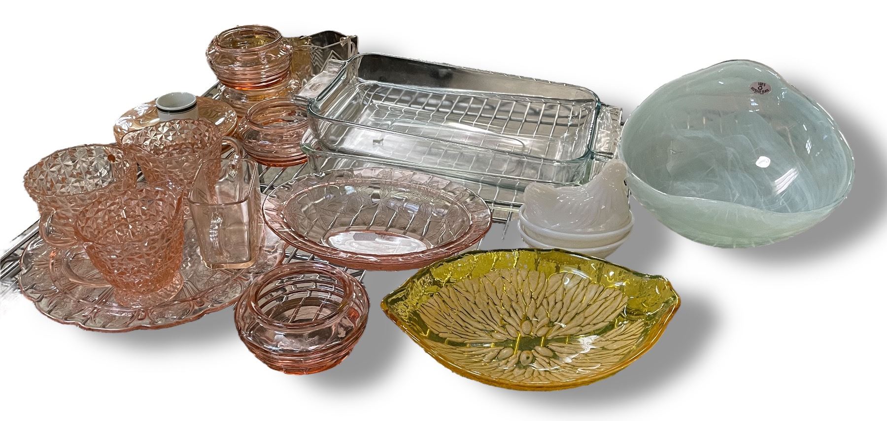 Beautiful Collection of Vintage Colored Glass and Crystal Tableware