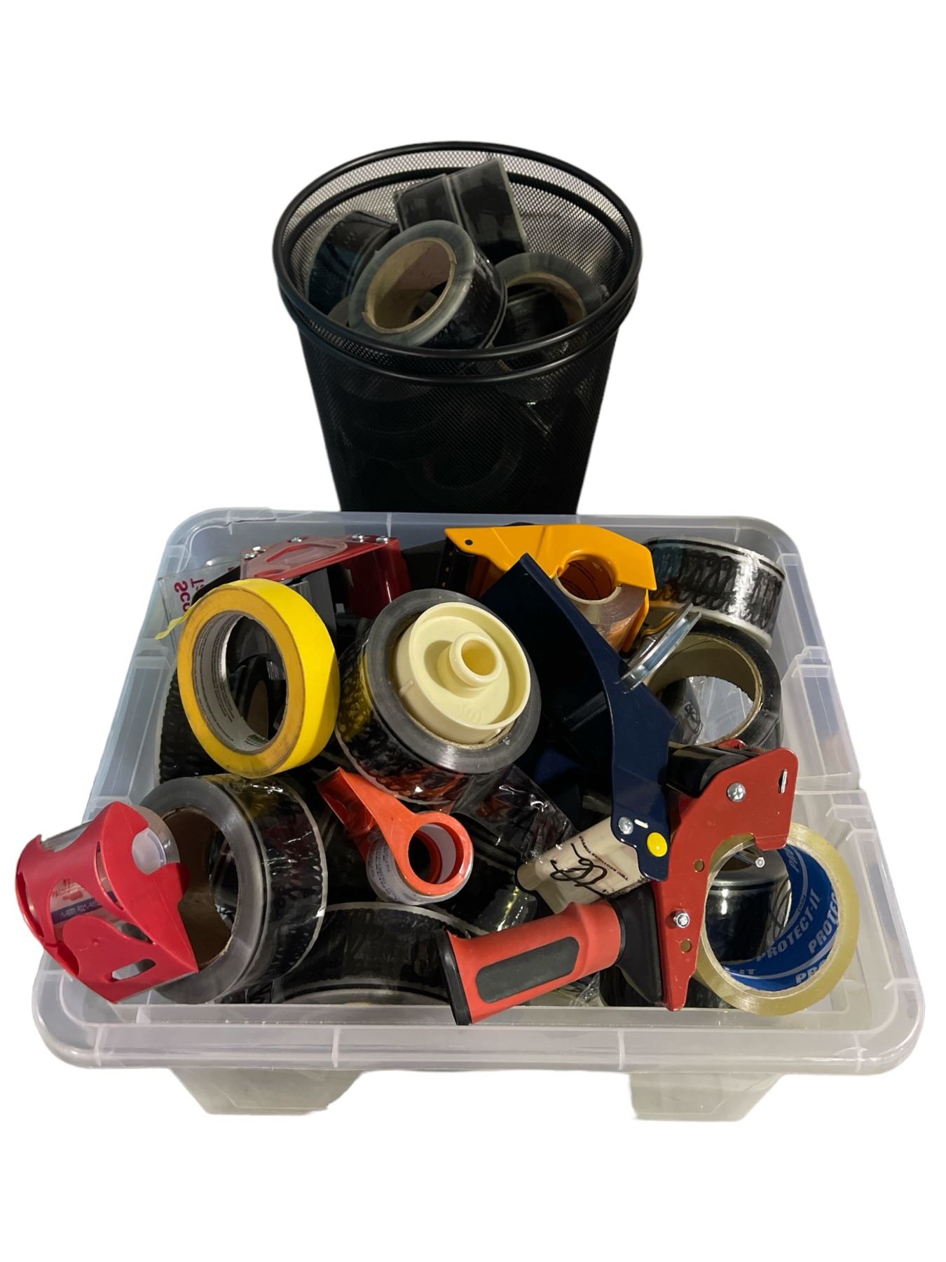 Bin lot - Tape guns & "Two Brothers Toffee" branded rolls of packing tape