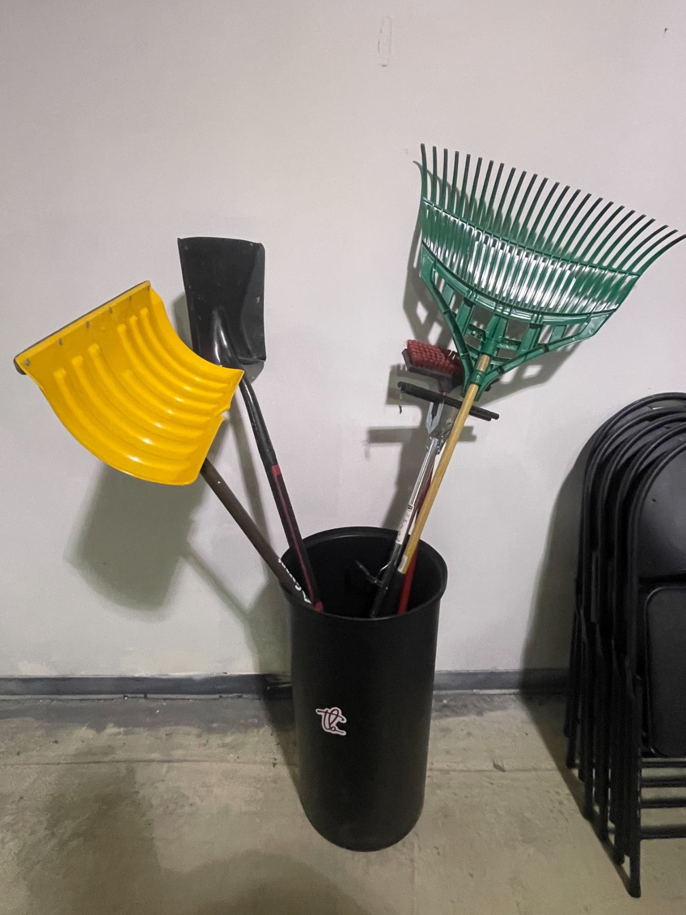 Bin lot - snow shovel / shovel / rake / cleaning brush