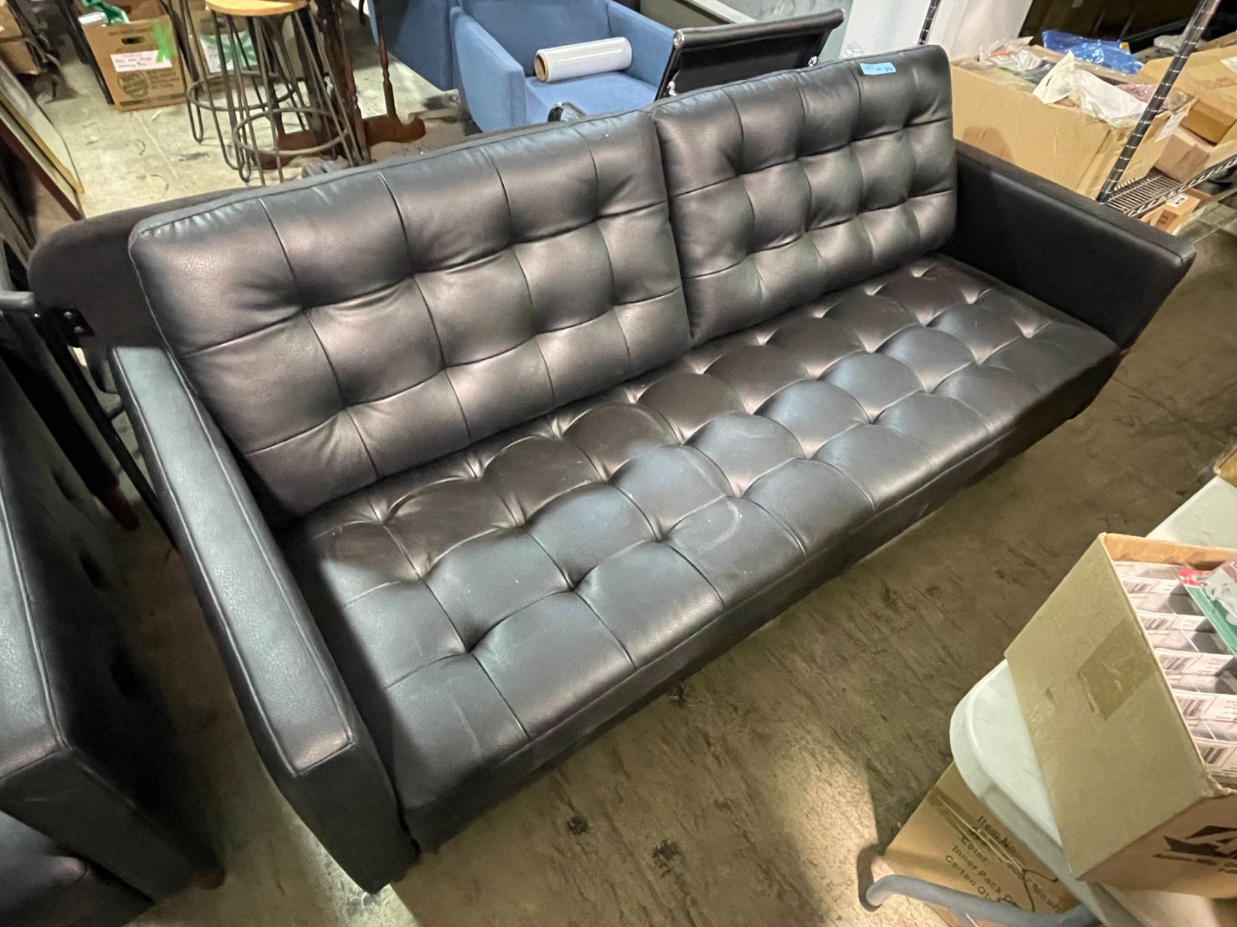 Black Faux Leather Sofa - Approx. H28" x W75" x D32"