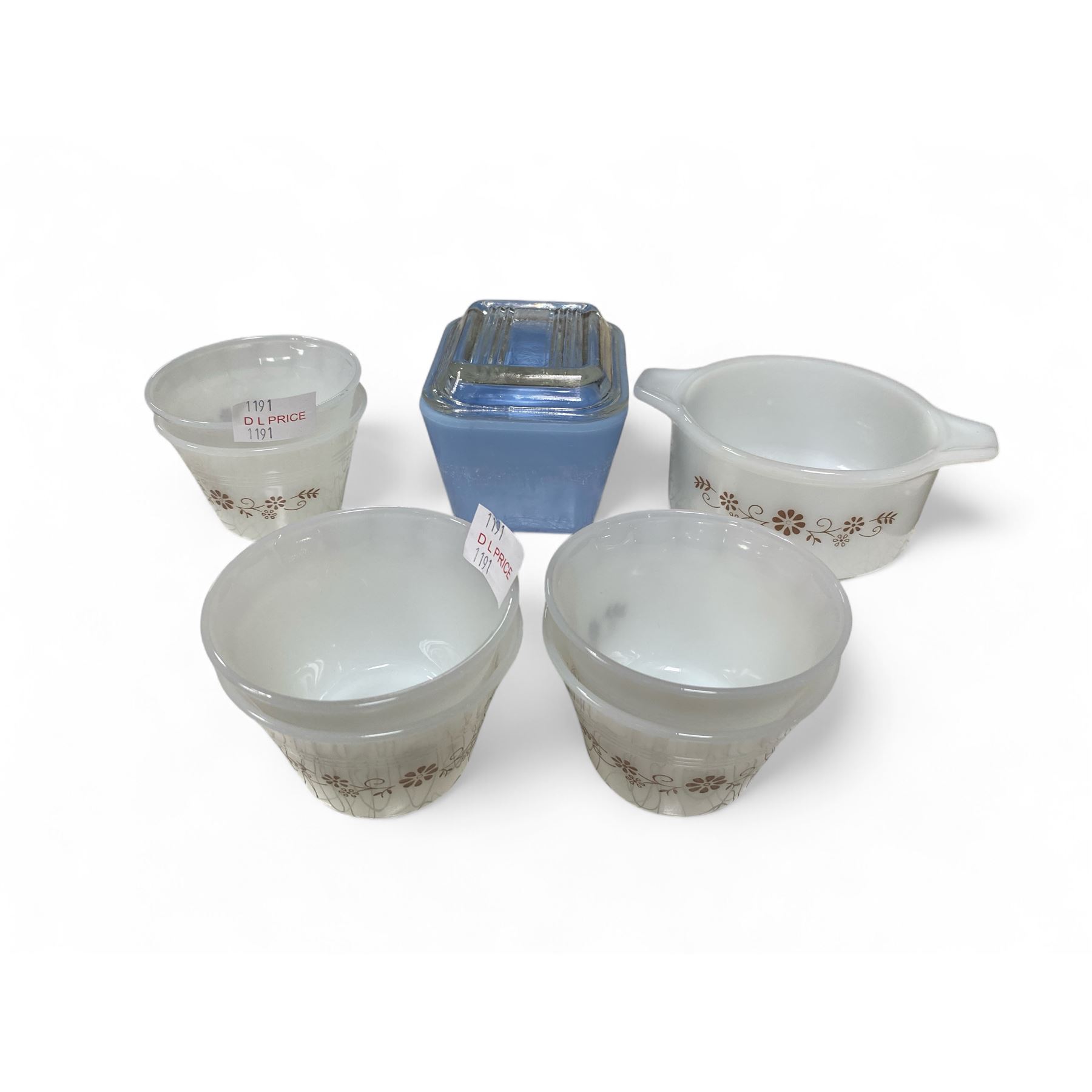 Blue Pyrex Butter Dish & 6 Dynaware Ramekins & 1 Dynaware 4.5" Dish