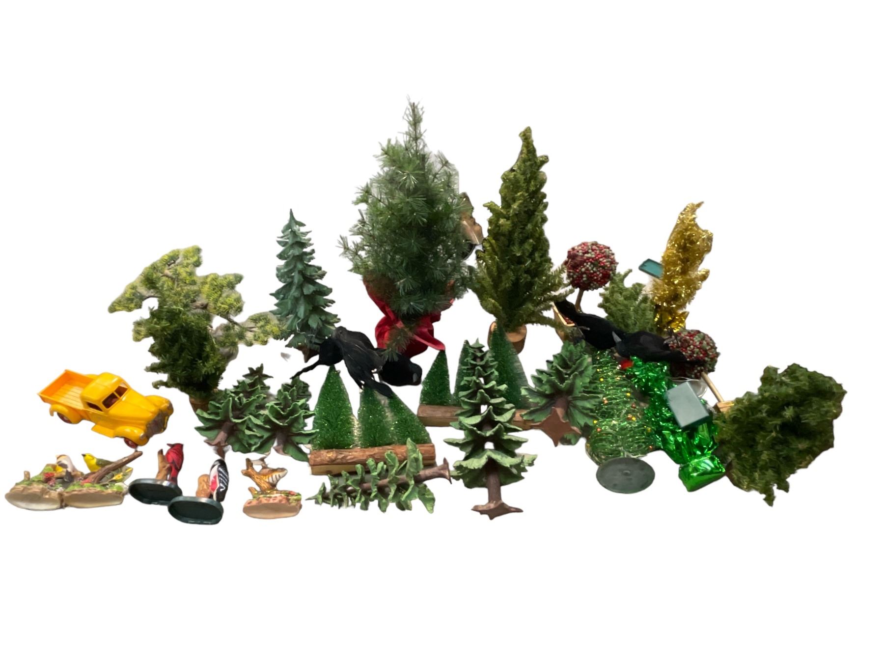 Box Full Of Christmas Greenery And Truck Etc..