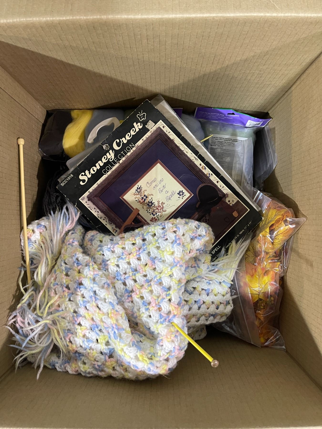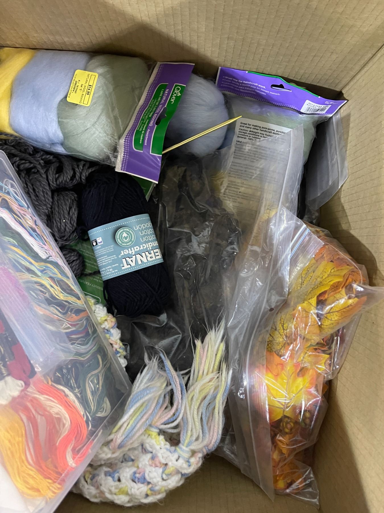 Box lot - Set dec - knitting kits / fake leaves / etc.
