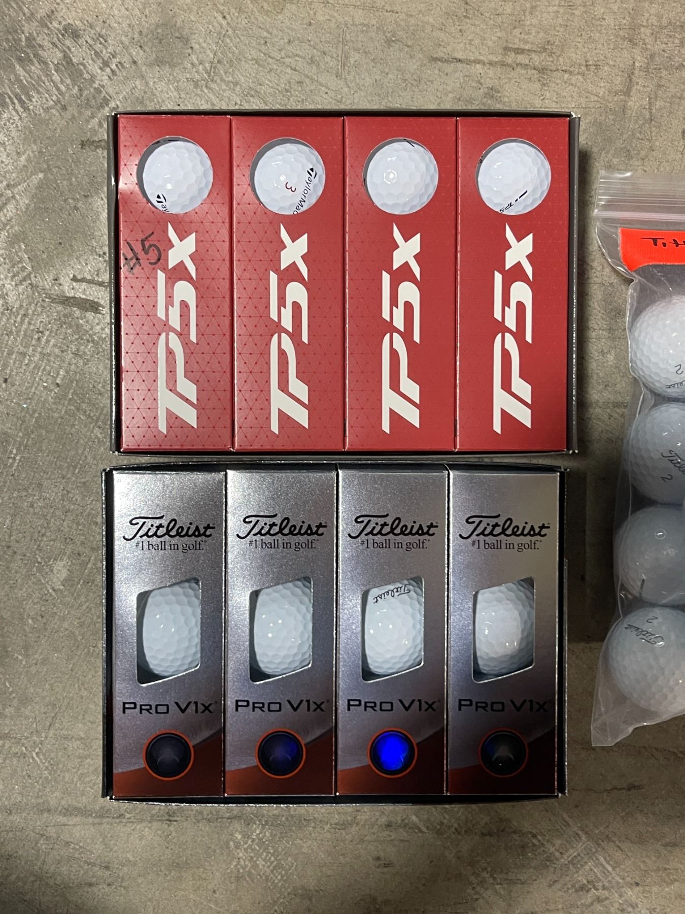 Brand New - TaylorMade TP5x Golf Balls, Titleist Pro V1x Golf Balls, Bag of Extra Titleist 2 Balls
