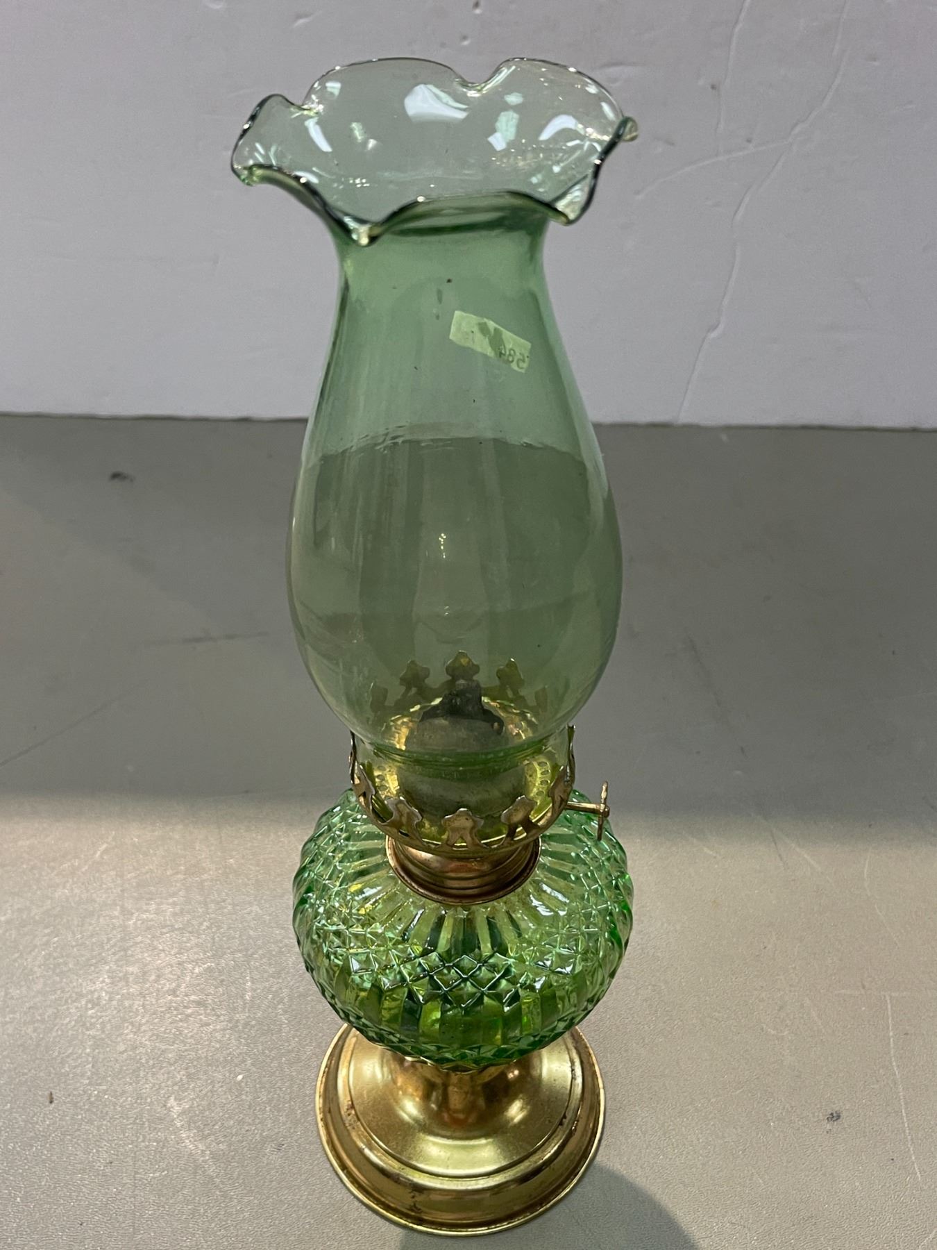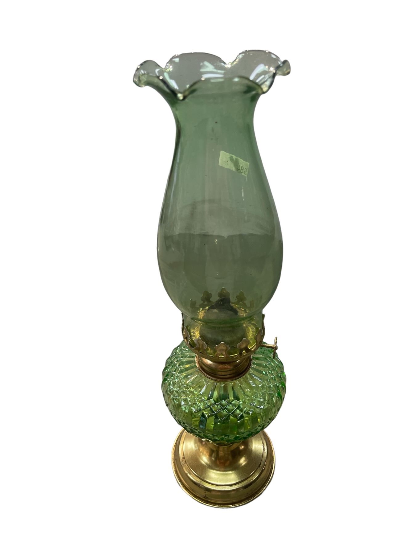Brass And Green Glass Oil Lamp