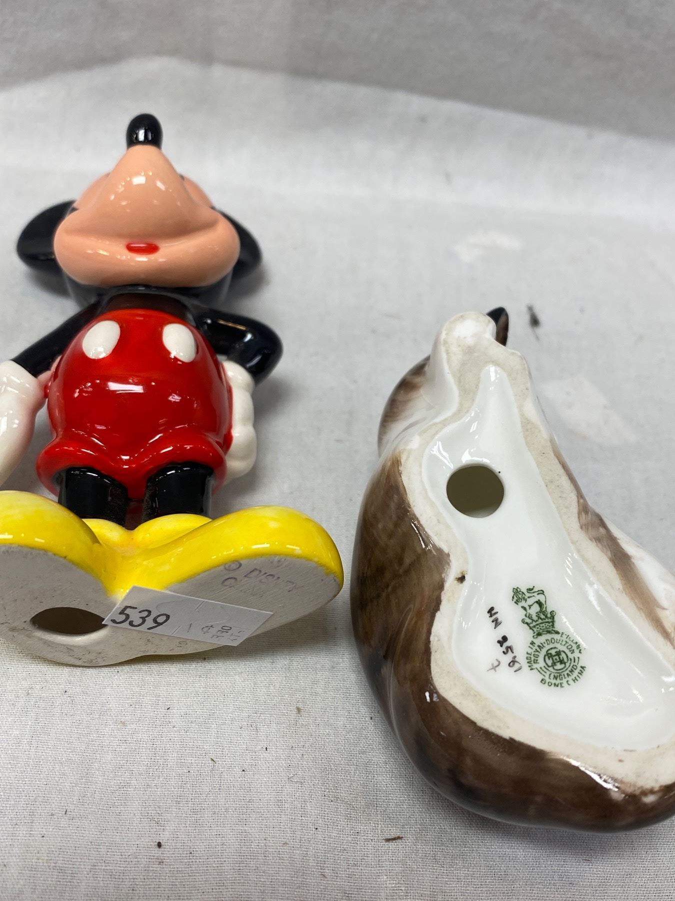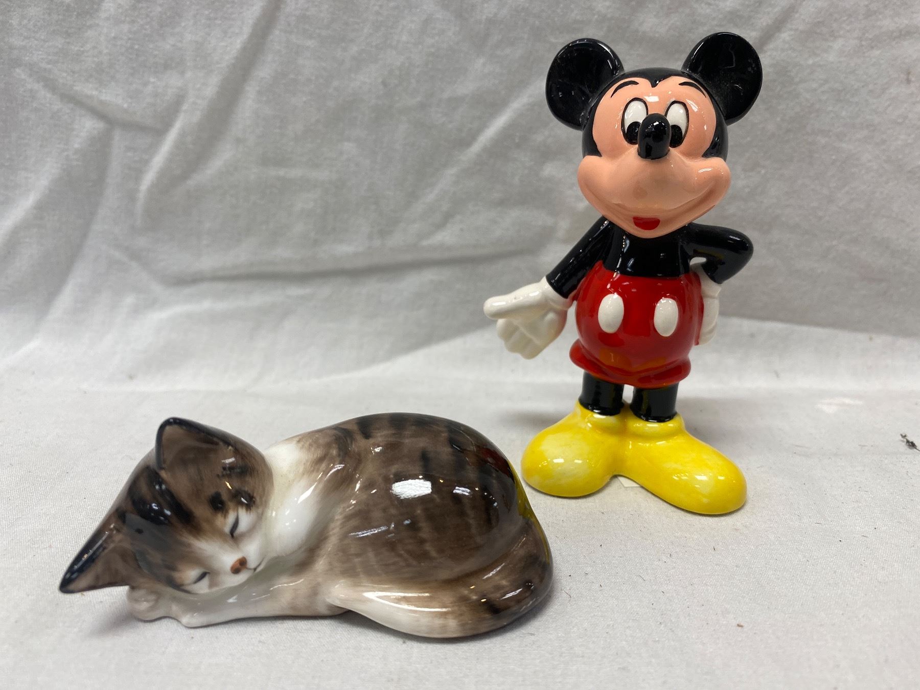 Ceramic Mickey Mouse Figurine And Royal Doulton Cat Figurine