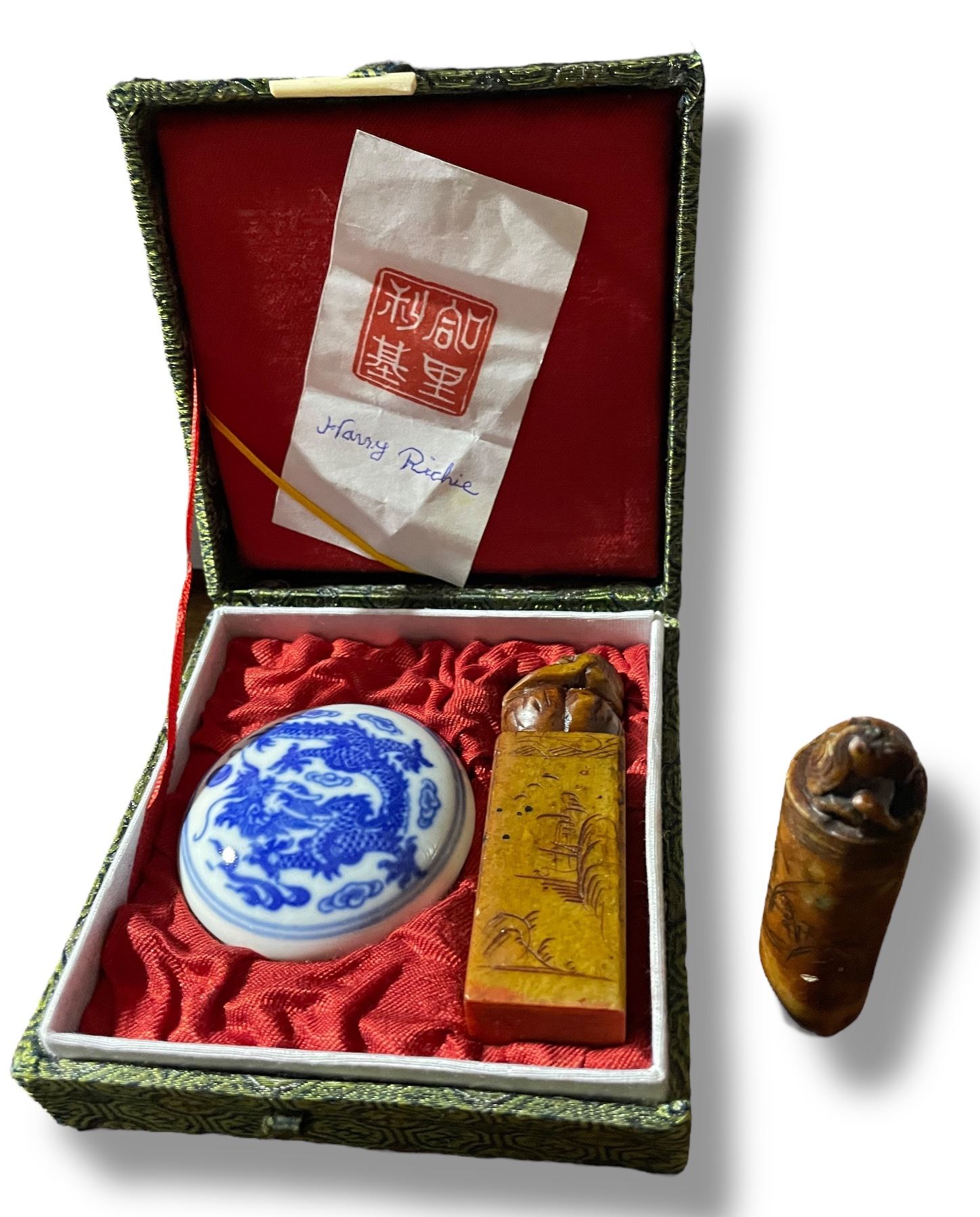 Chinese Chop Stamp Set with Red Ink in Presentation Box