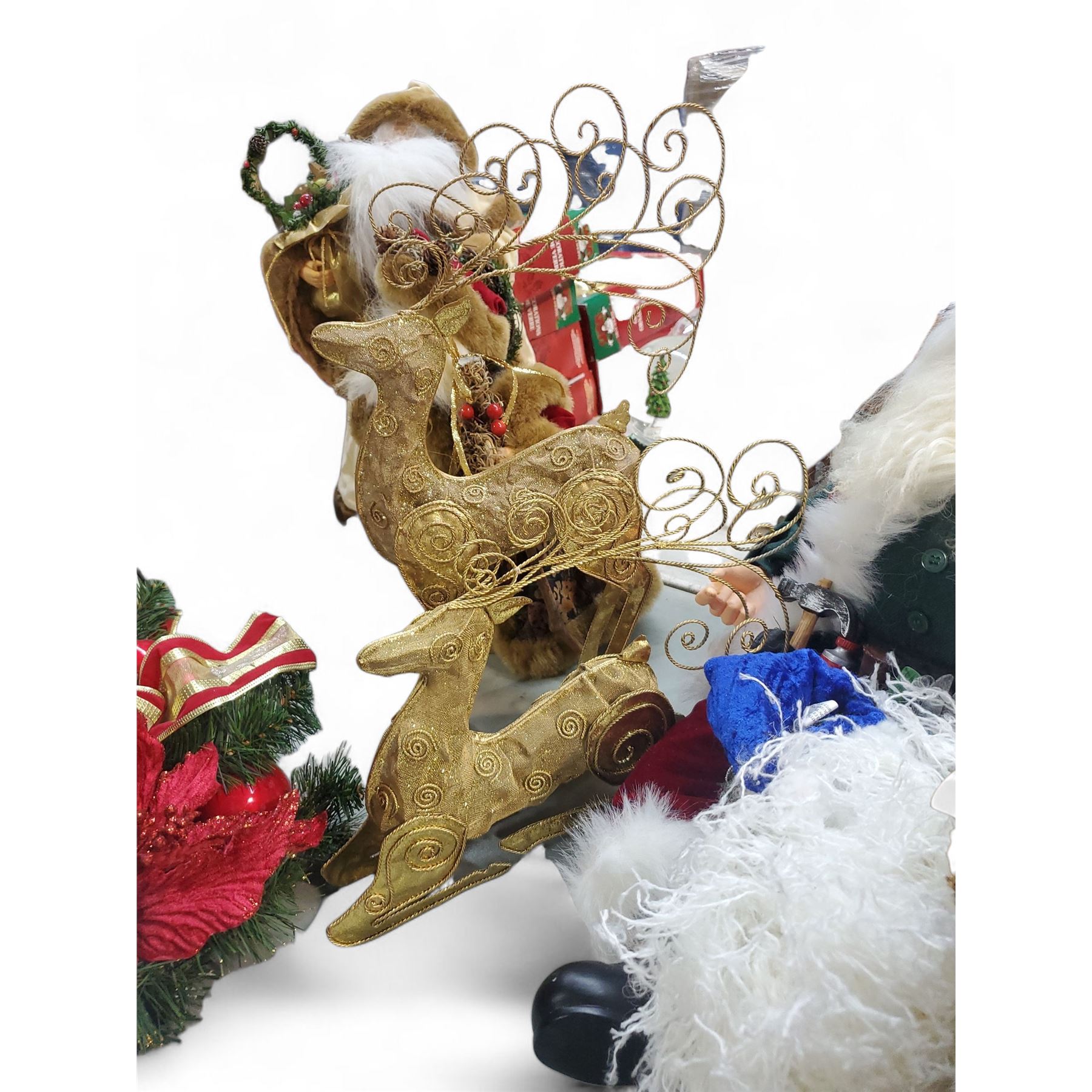 Christmas Decor & Figurines - includes Set of Golden 16" Reindeer Figurines/Animated Santa Claus Figurines/Center Floral Festive Arrangement & More