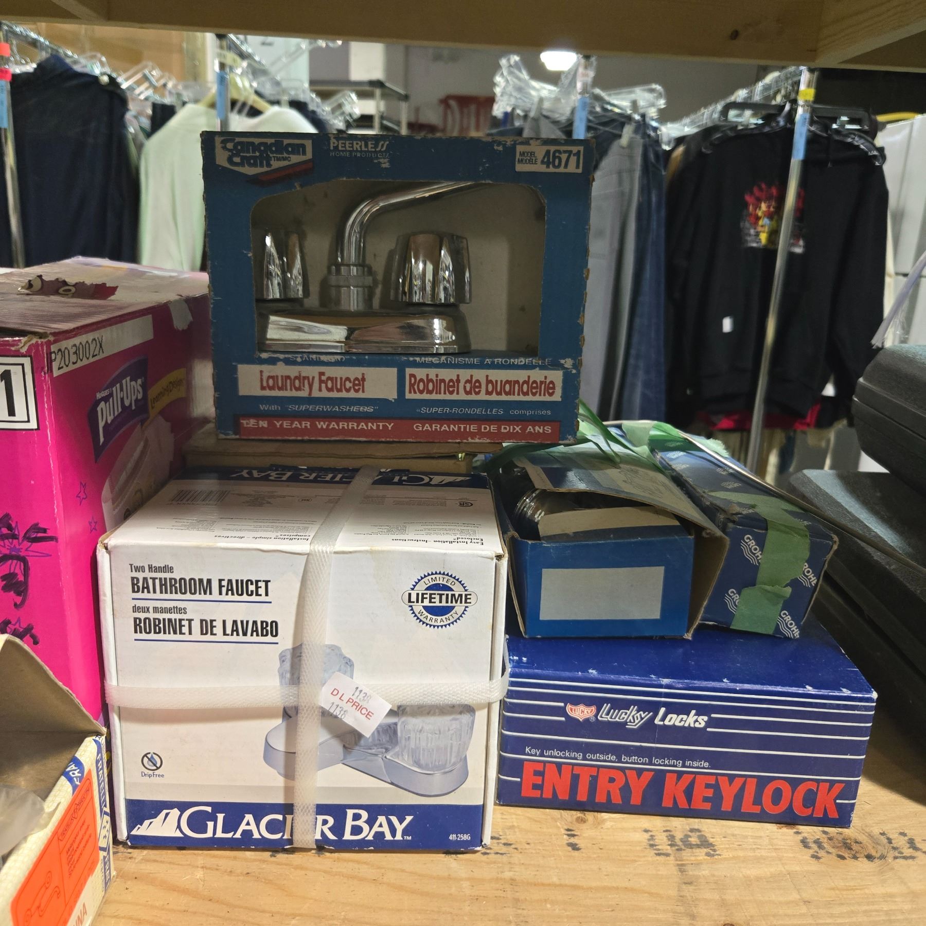 Home Improvement Lots, Hinges, Faucets, Locks, Flood Lights, Friedrich Bathtub Faucet (BNIB) & More